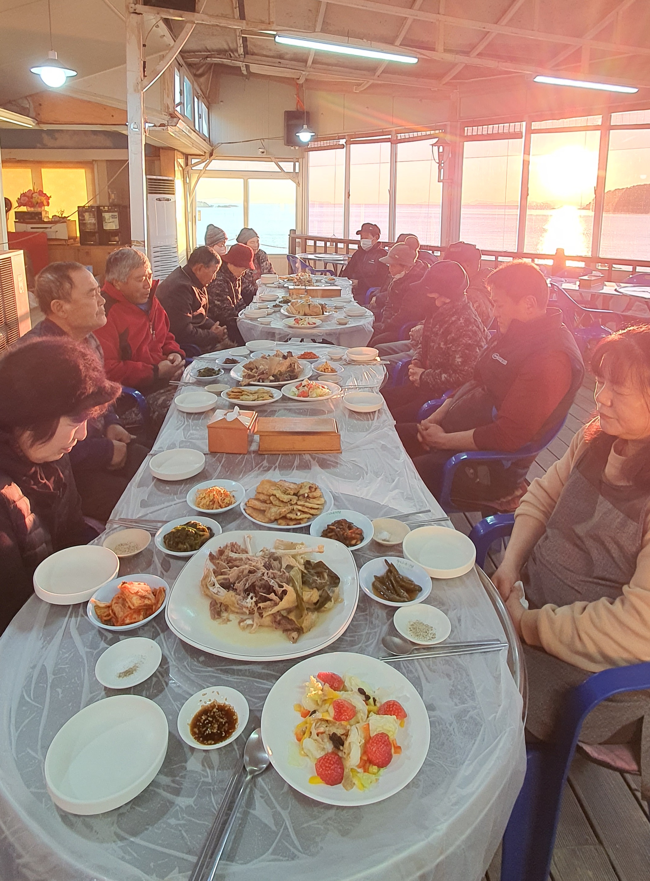 함께 모여 식사를 했습니다.