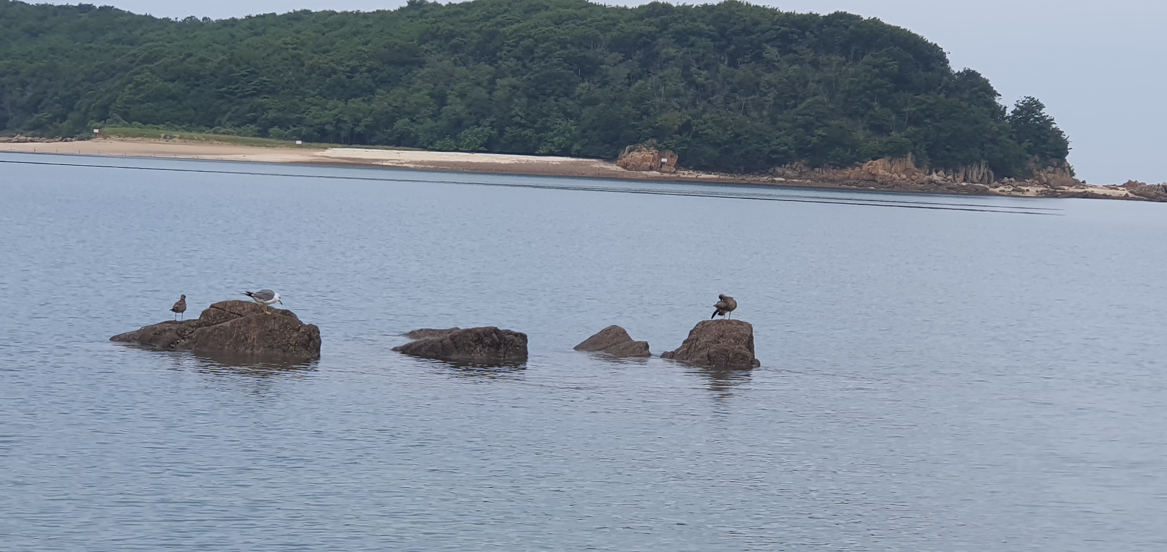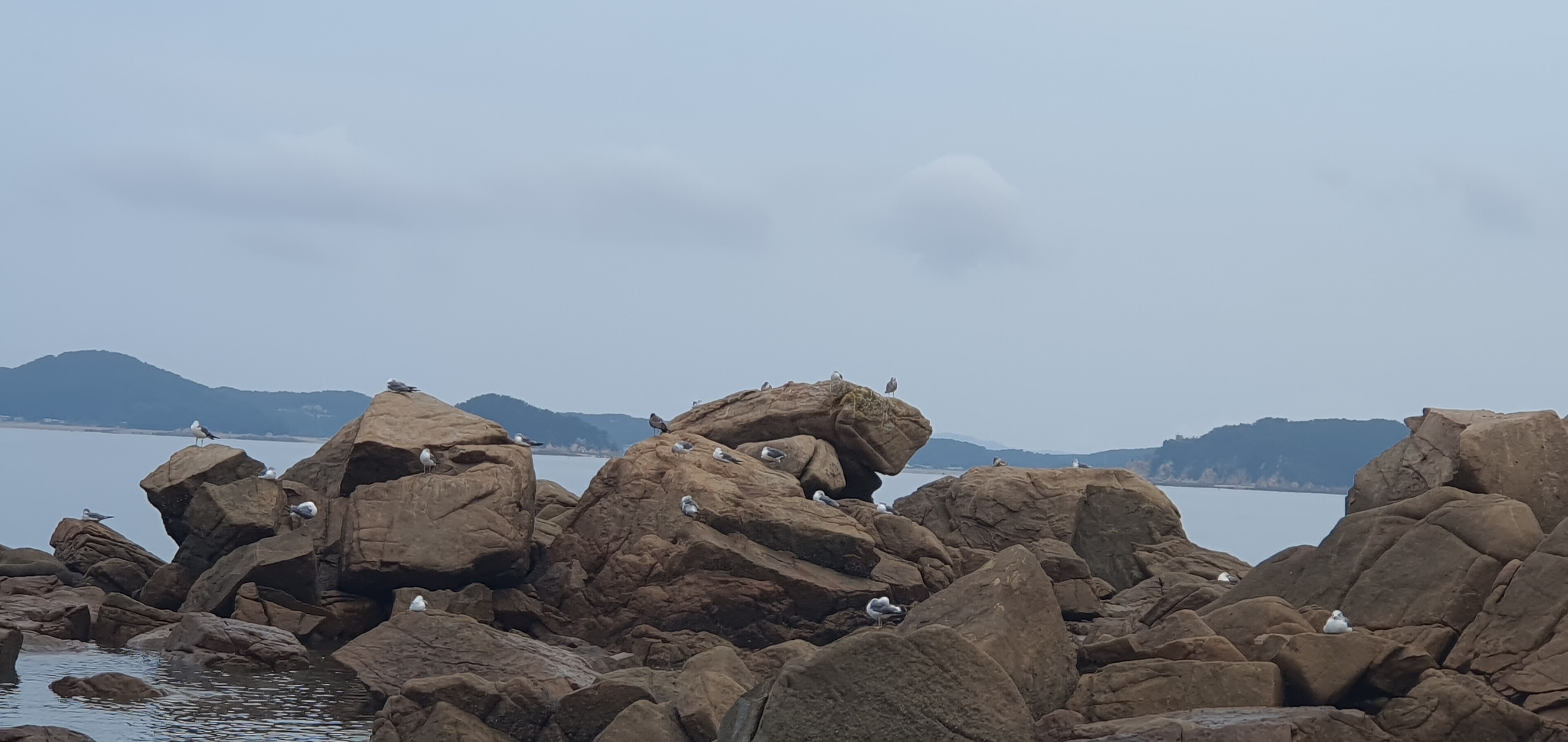 바위위의 갈매기들이 반기며