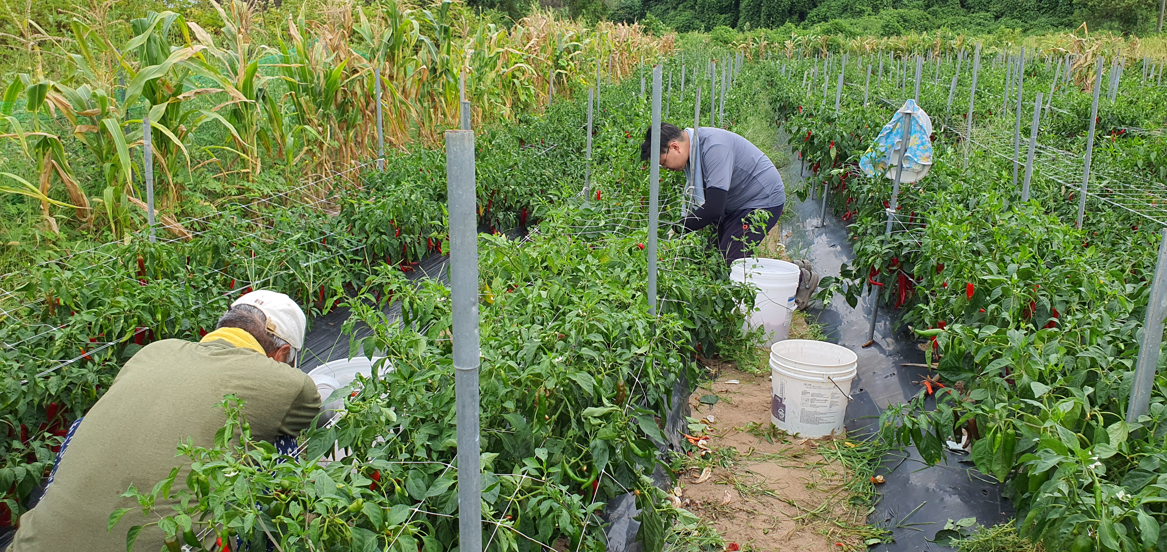 아버지,엄마,아들이 힘을 합하여 8일차 열심히 따고 있습니다.
