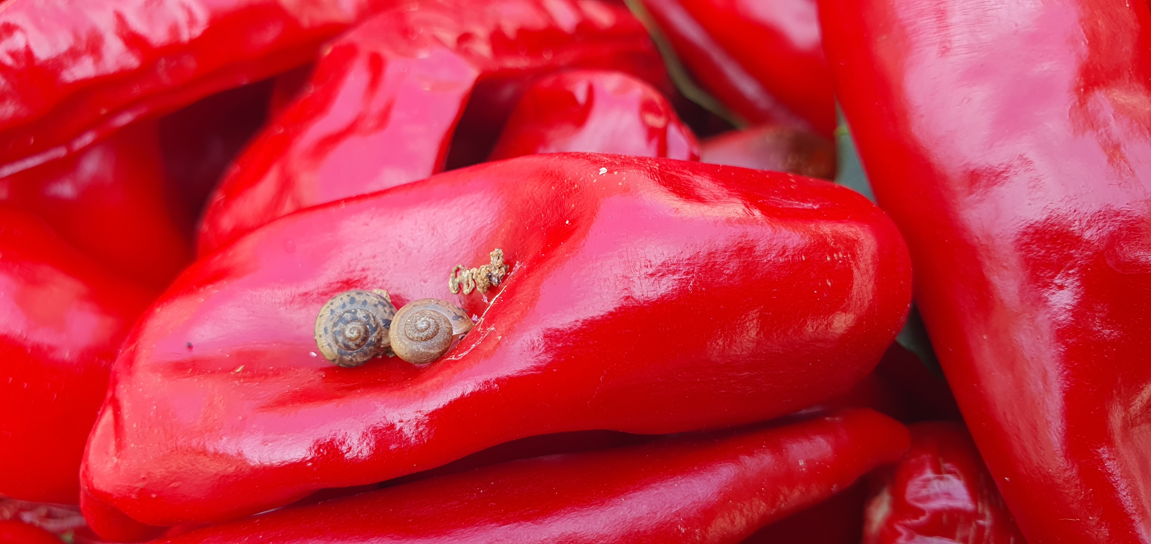 고추위의 달팽이 두마리