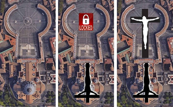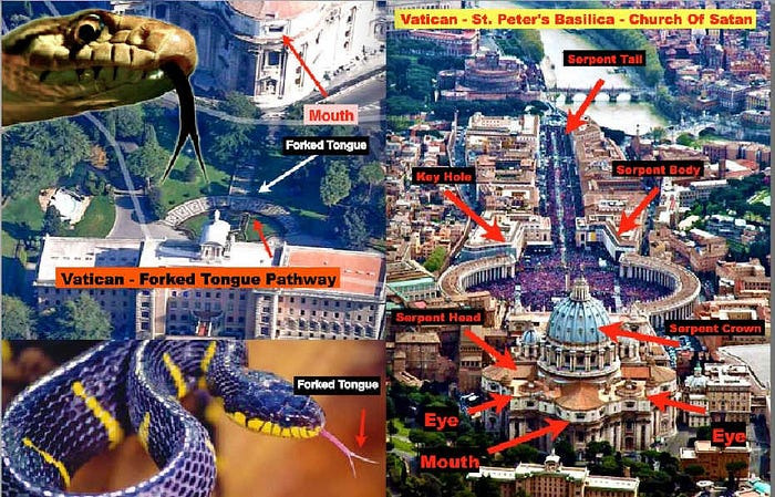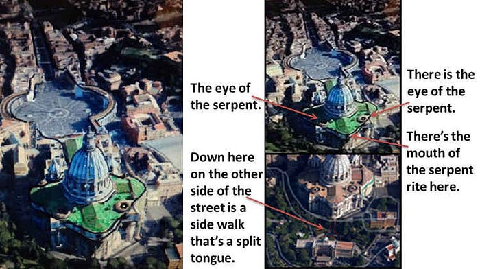 바티칸 시국의 성 베드로 대성당 의 건축 디자인은 문자 그대로 왕관을 쓴 뱀 입니다 !