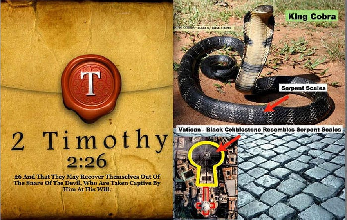 뱀의 갈라진 혀의 길은 정부 청사( 바티칸 시국의 고버나토레 궁전)로 이어진다. 왜냐하면 사탄이 정부를 운영하고 있기 때문이다!