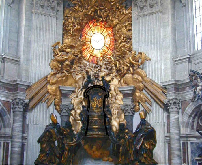 남성의 성기는 성 베드로의 왕좌(검은색으로 윤곽이 그어진 부분)에 의해 만들어졌습니다 .