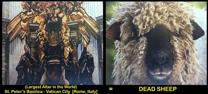 바티칸 시국의 성 베드로 대성당은 거대한 뱀 모양으로 만들어졌으며, 죽은 양은 뱀의 입 안에 들어있습니다!