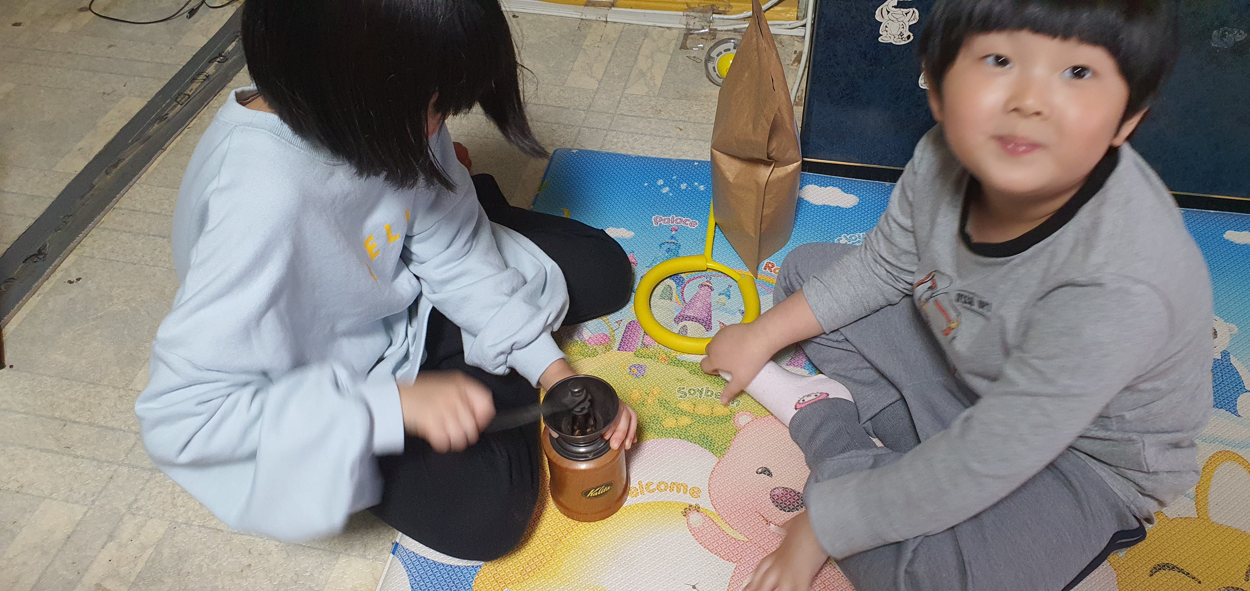 할아버지위해 커피원두 가는 이쁜 손녀 영선,기영이
