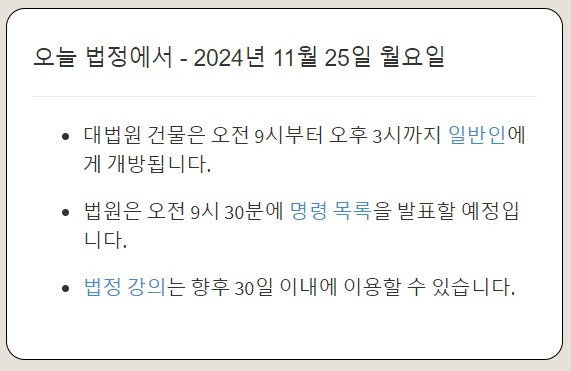 또한, 미국시간 25일 오후 7시 현재까지도 대법원 홈피에 뜬,