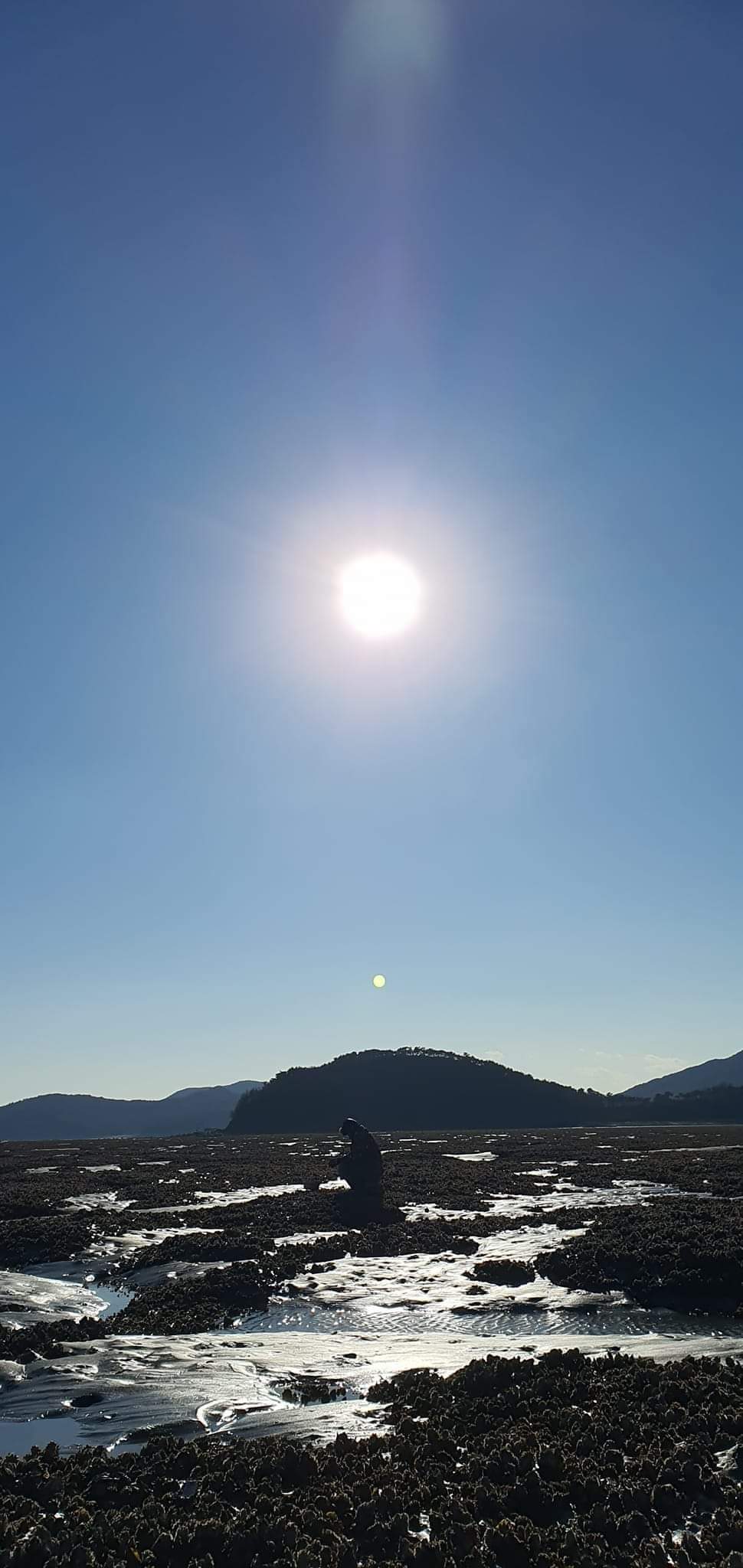 새벽에 굴따는 현장에서 물이 나가기 기다리며 마주한 일출