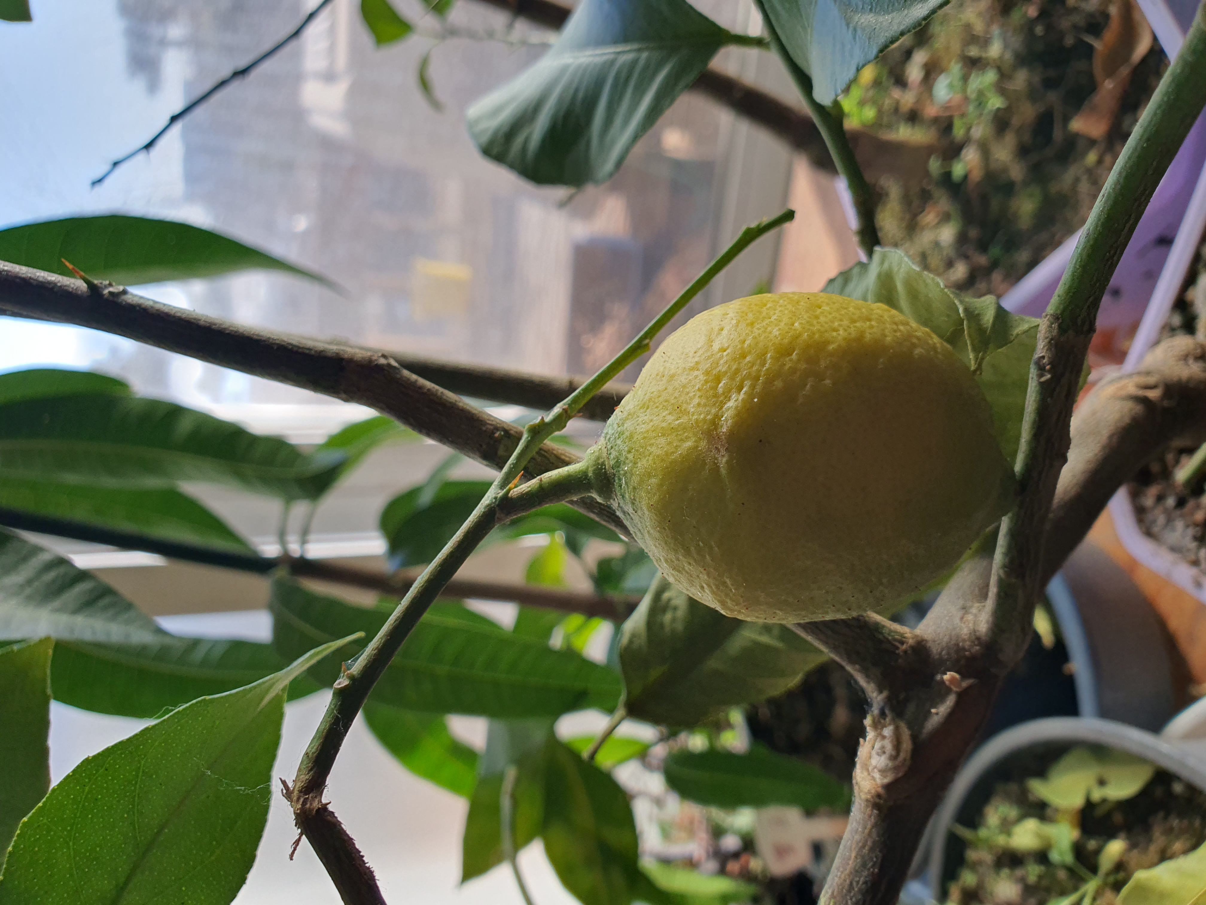 딱 1개 열린 레몬이 익어가네요
