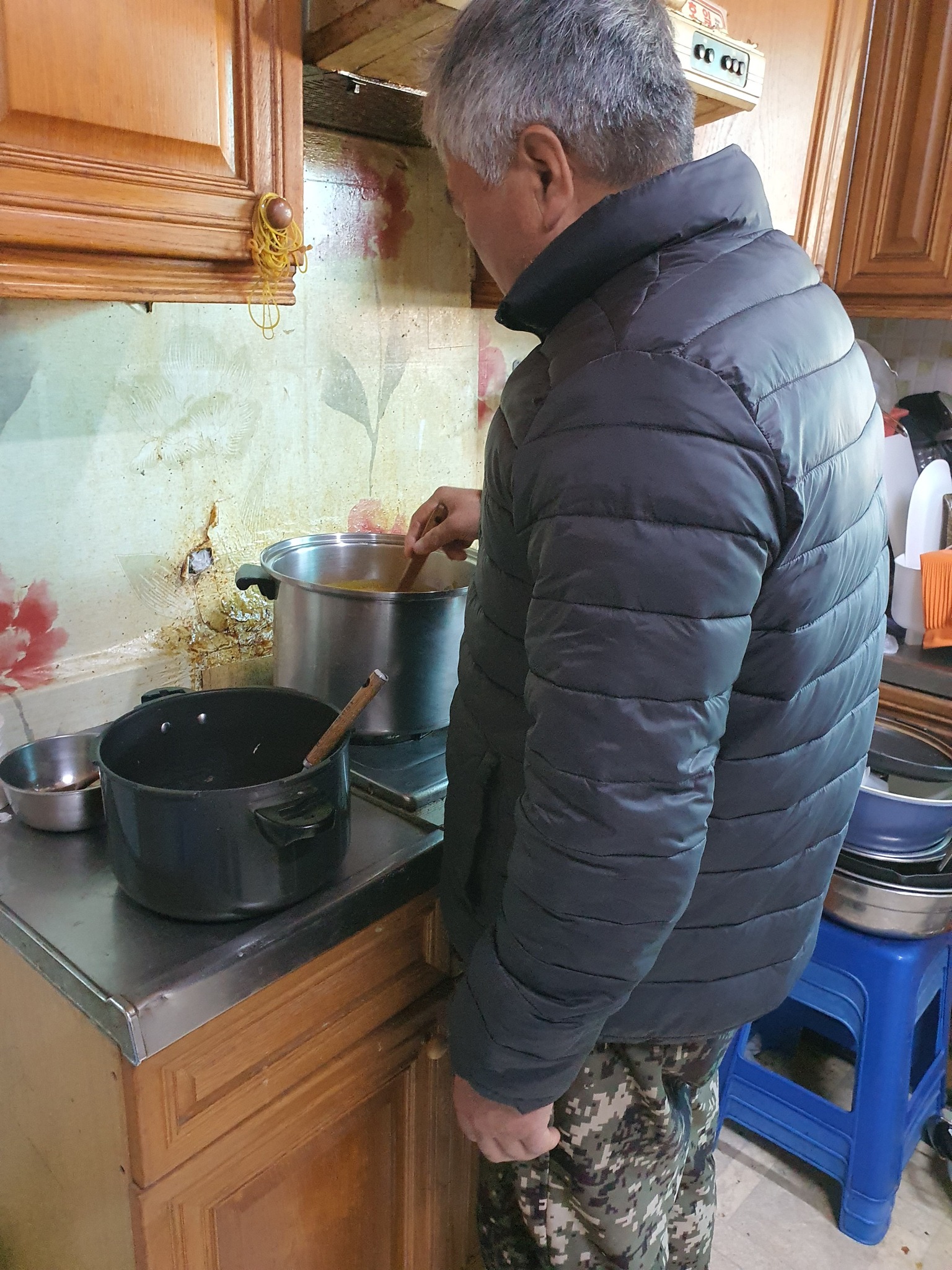 손주들 주려고 호박죽 끓이는 할아버지