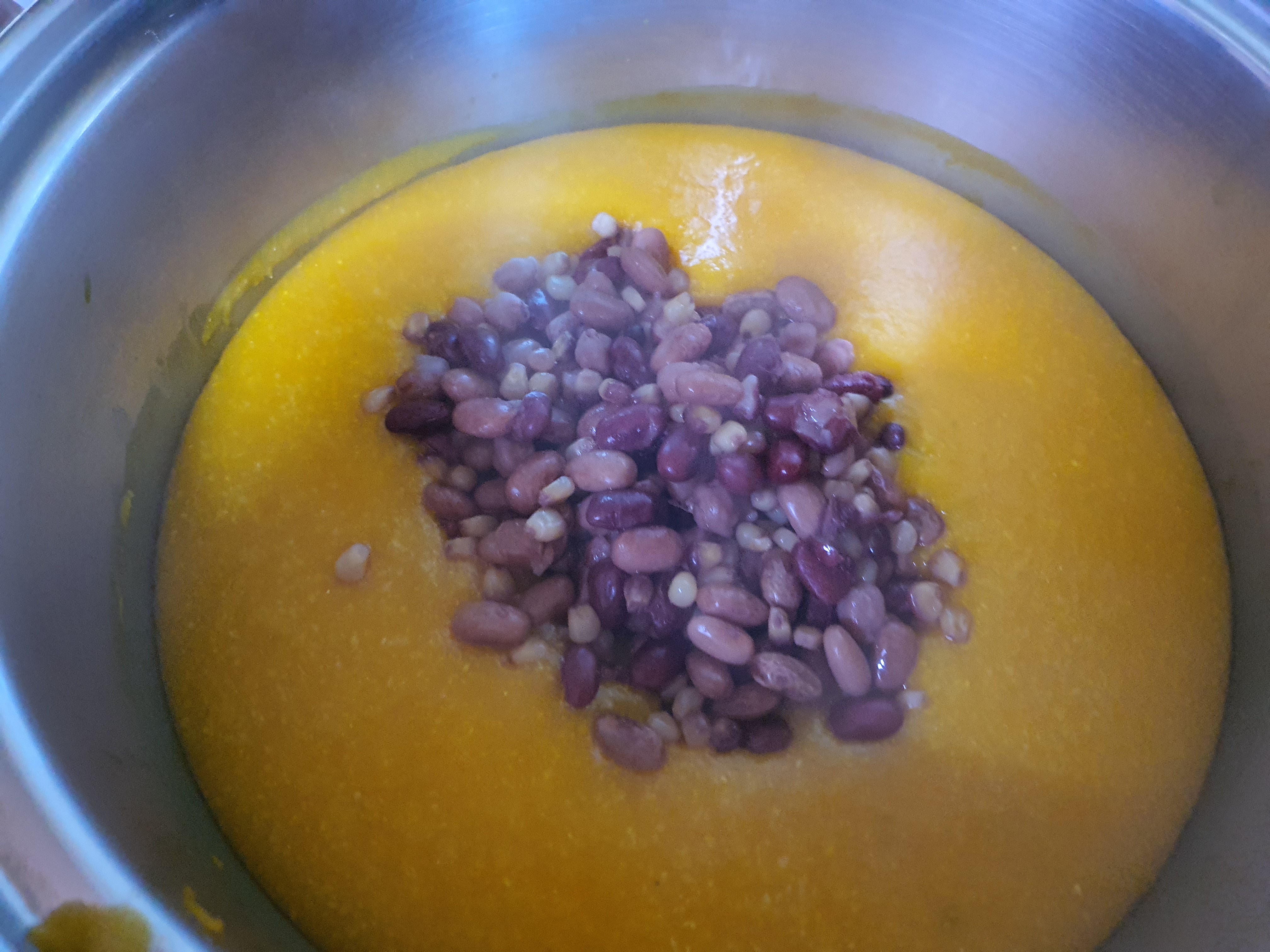 호박죽에 강낭콩,옥수수,병아리콩 넣음