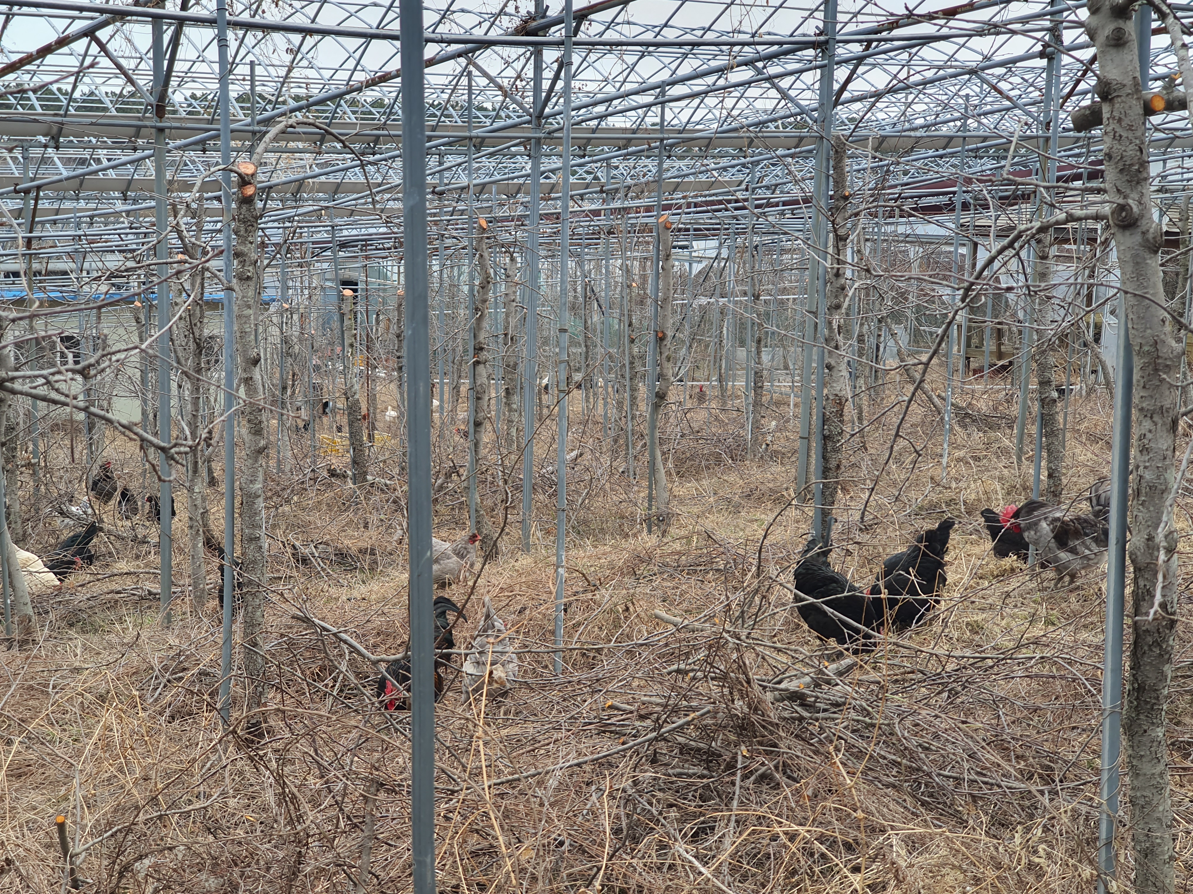 사과밭을 운동장 삼아 돌아다니며 무엇인가를 흙을 뒤집고 쪼아 먹고