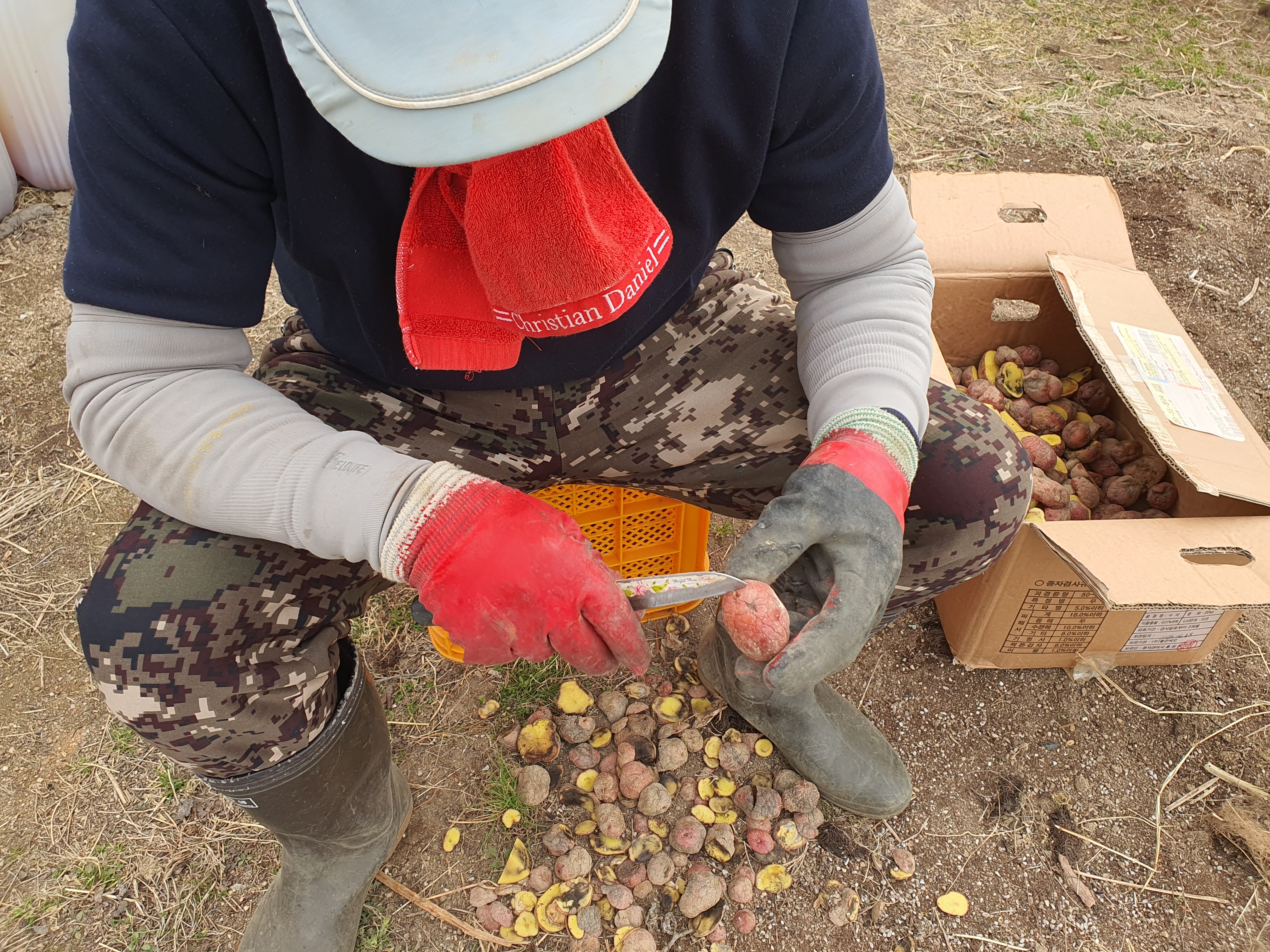 홍감자 종자 자르기