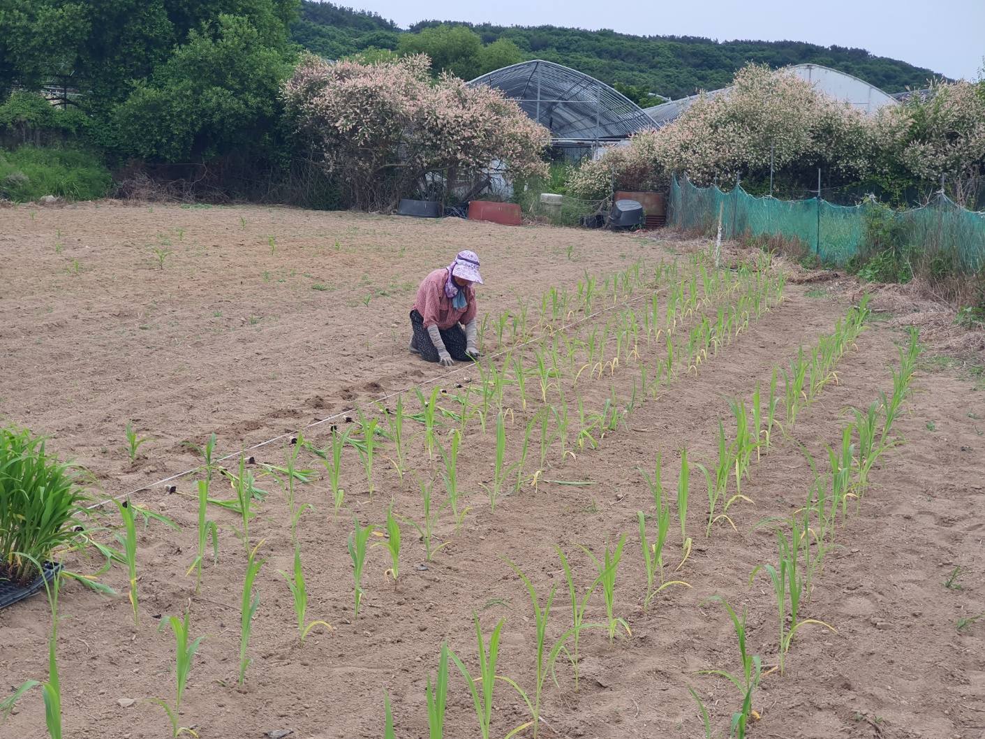종자가 묵은것인지 발아율이 아주 저조해서 찰옥수수 모종을 아들과 둘이 심었습니다.