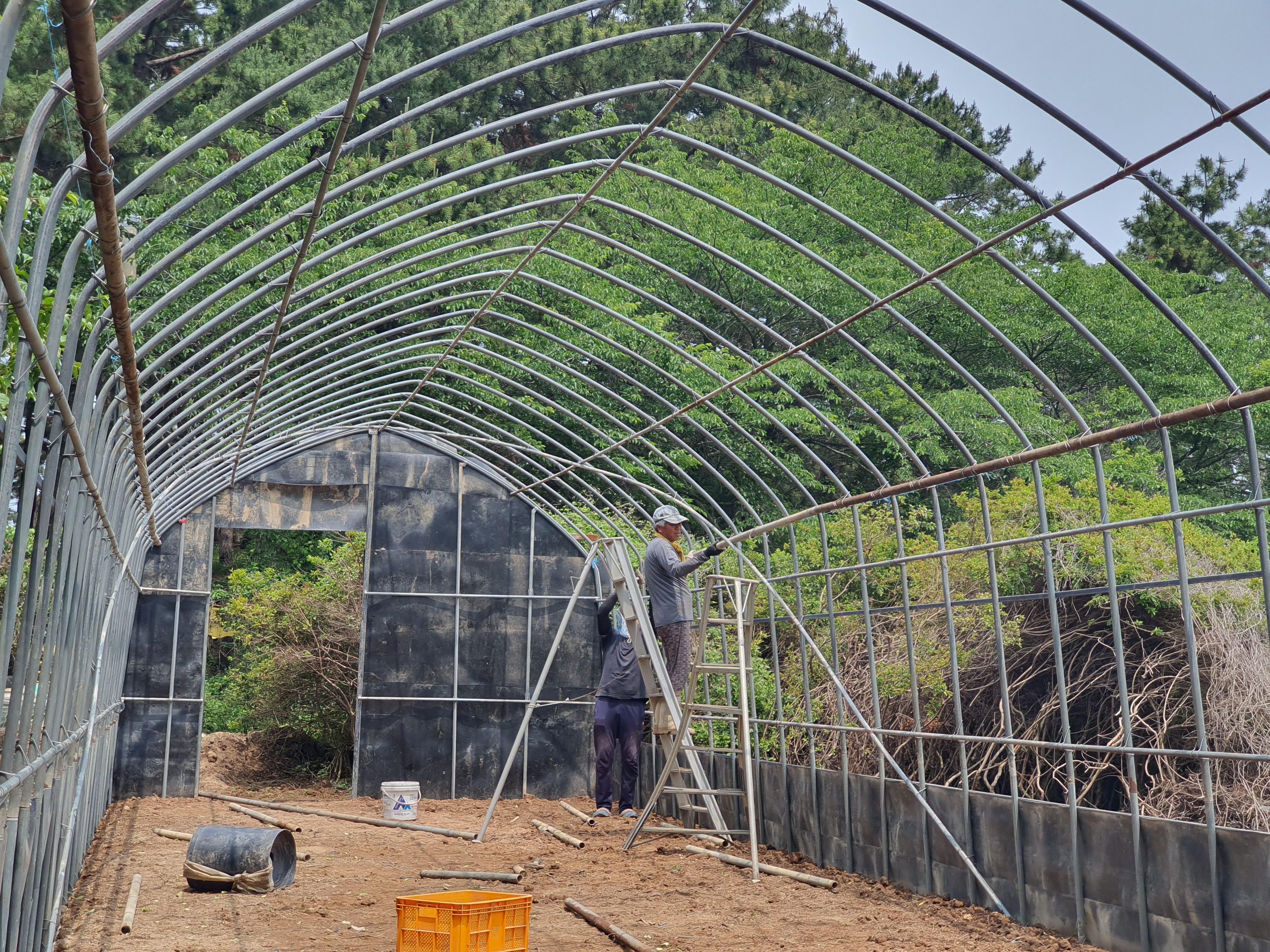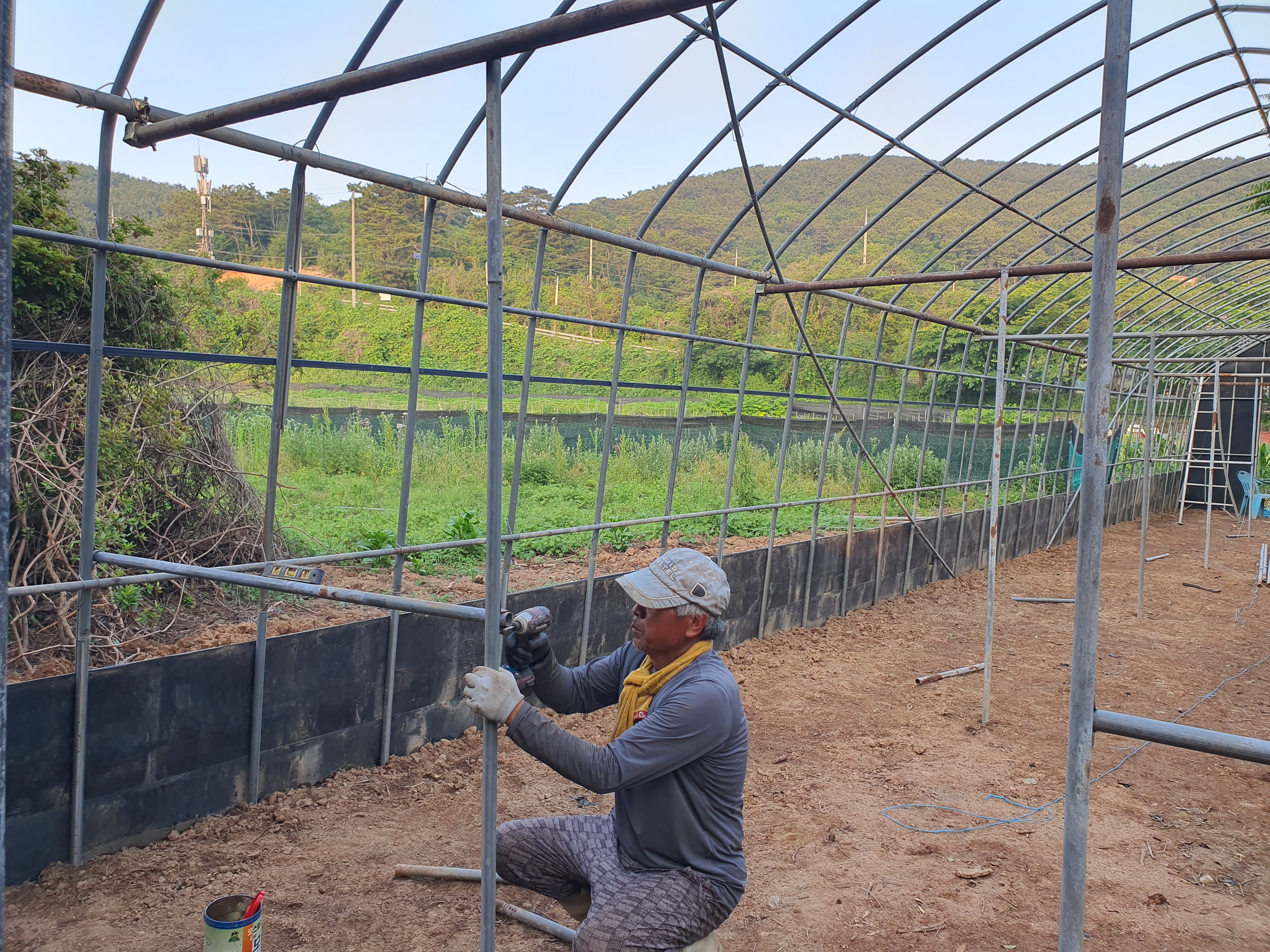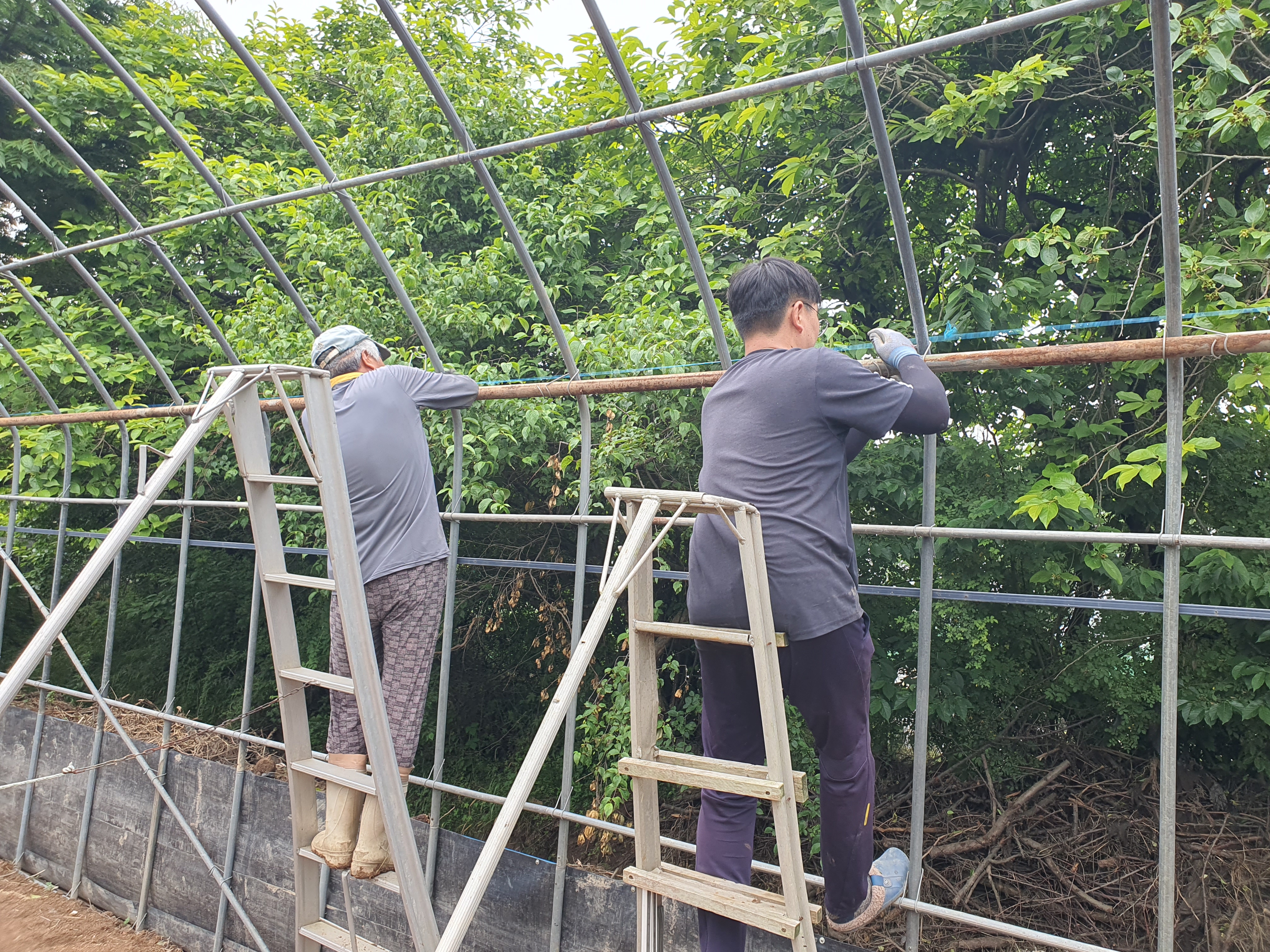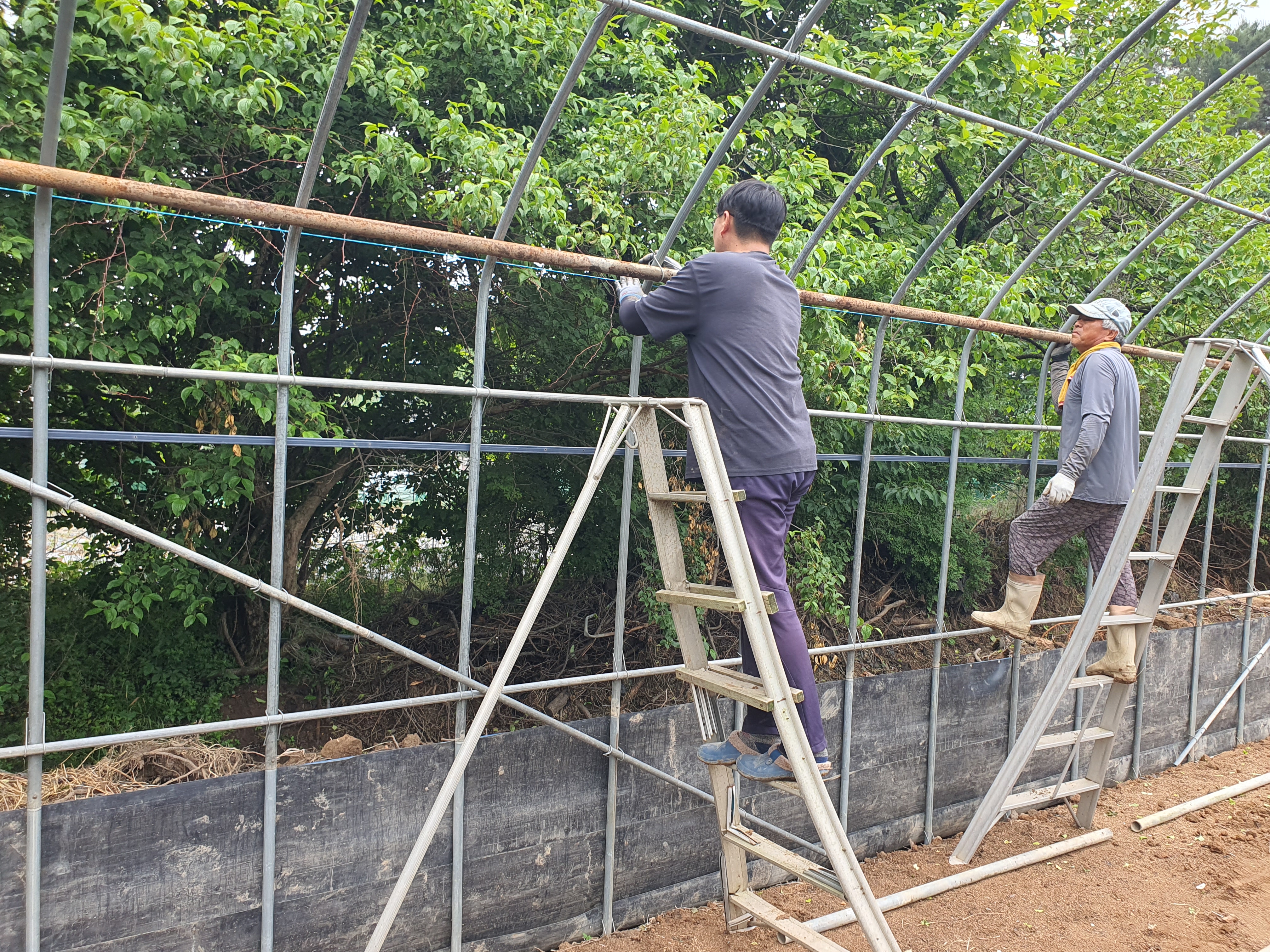 하우스 중방 아시바 파이프 거는일을 하고 있습니다.