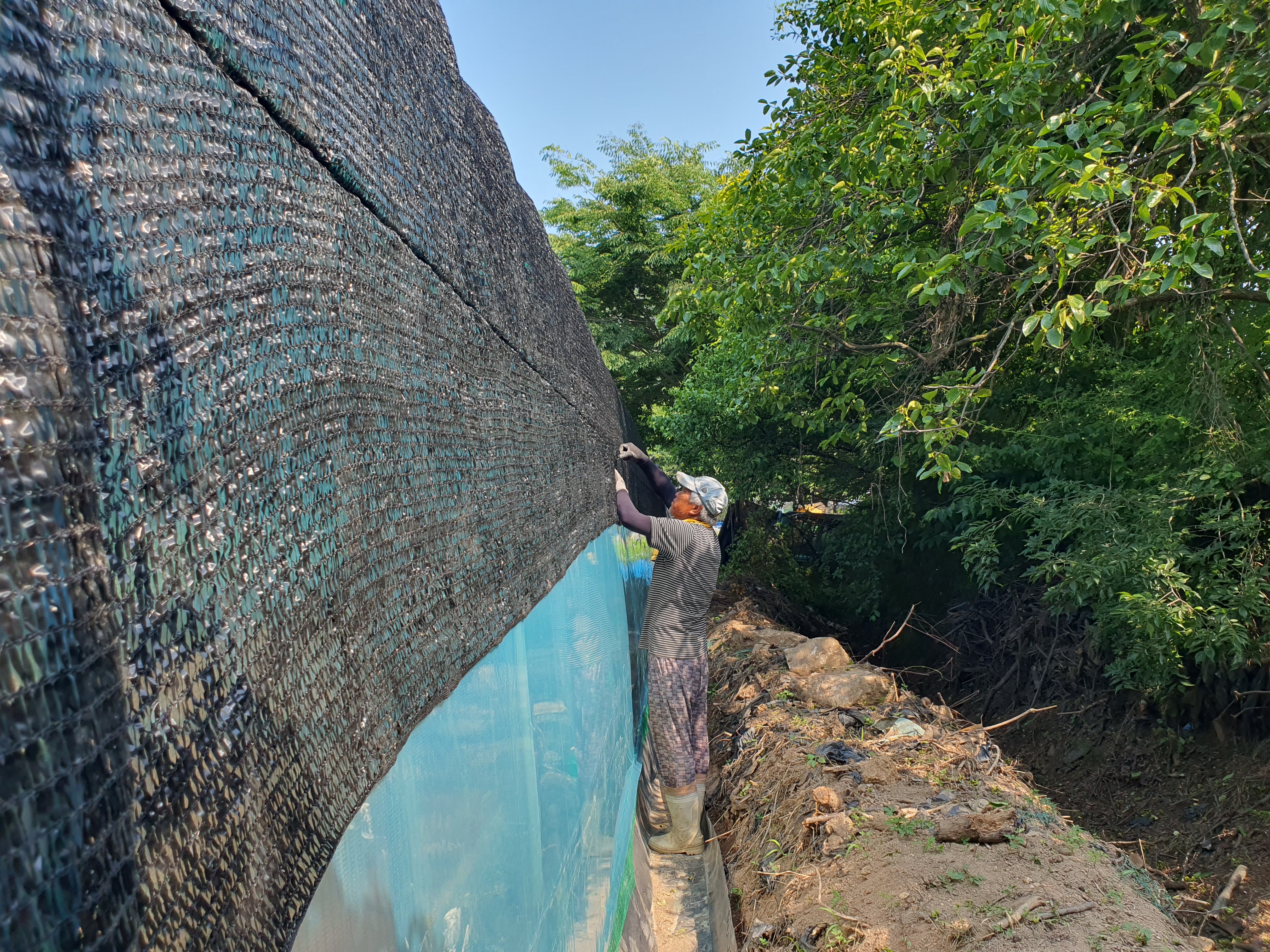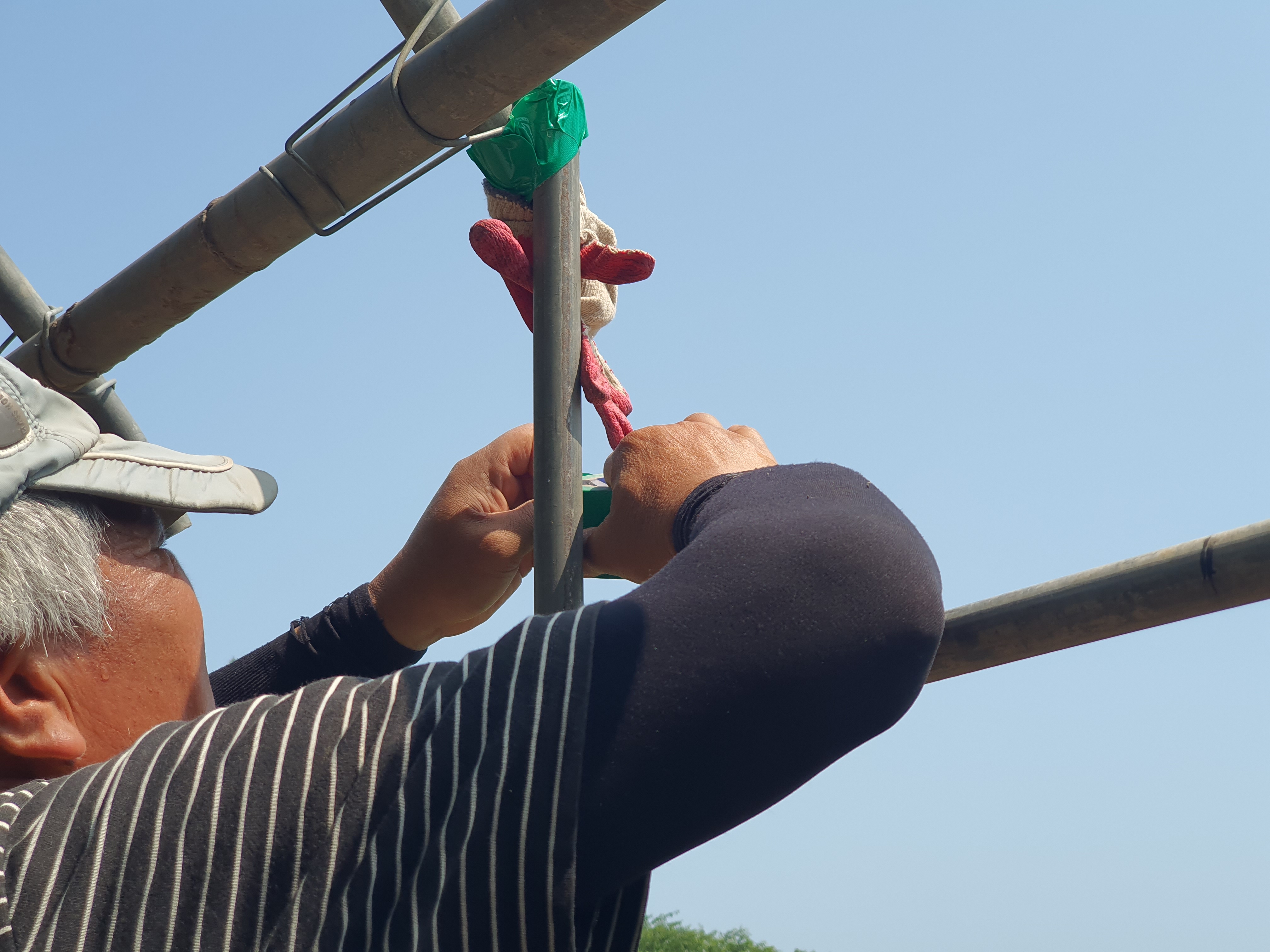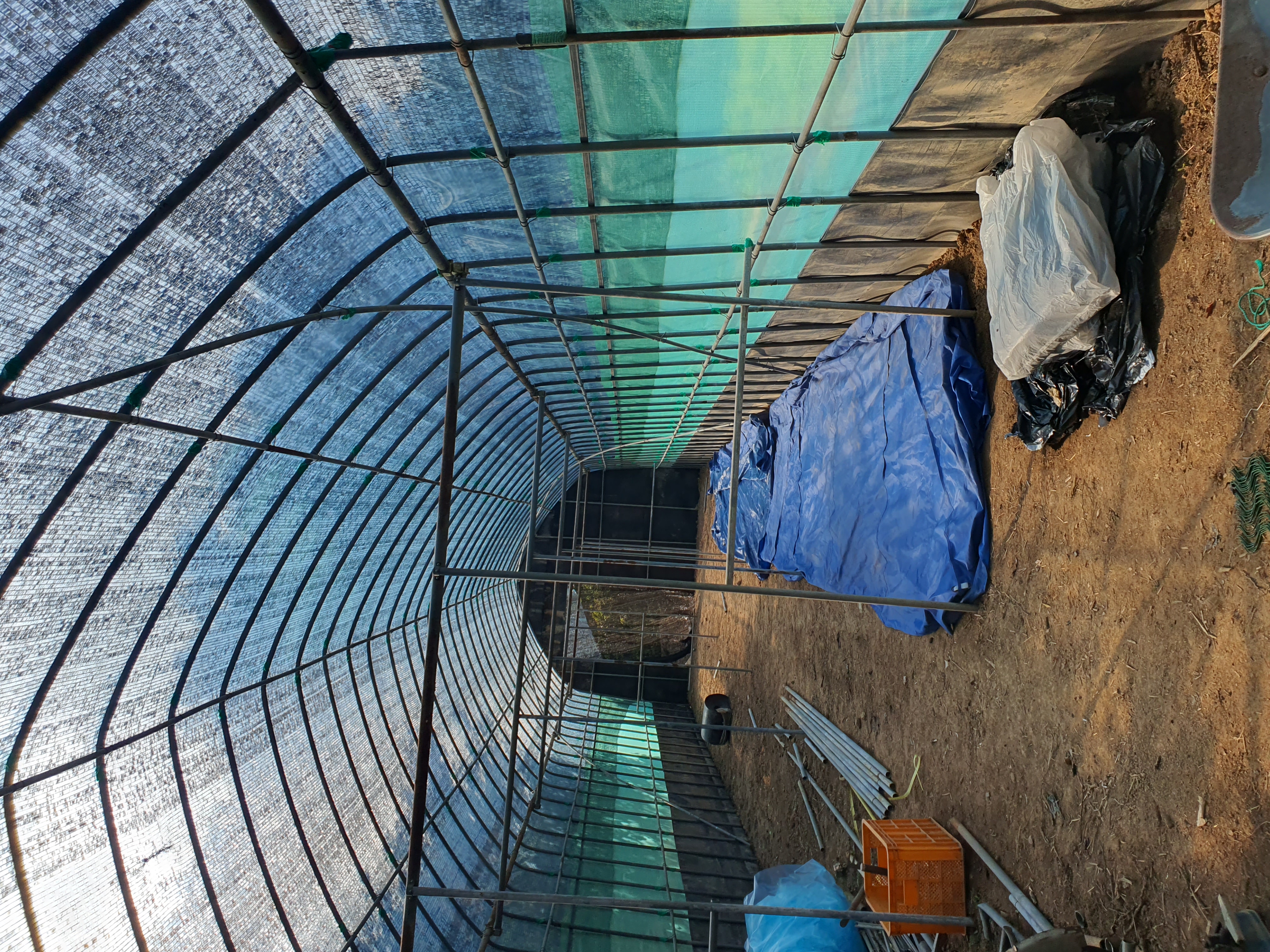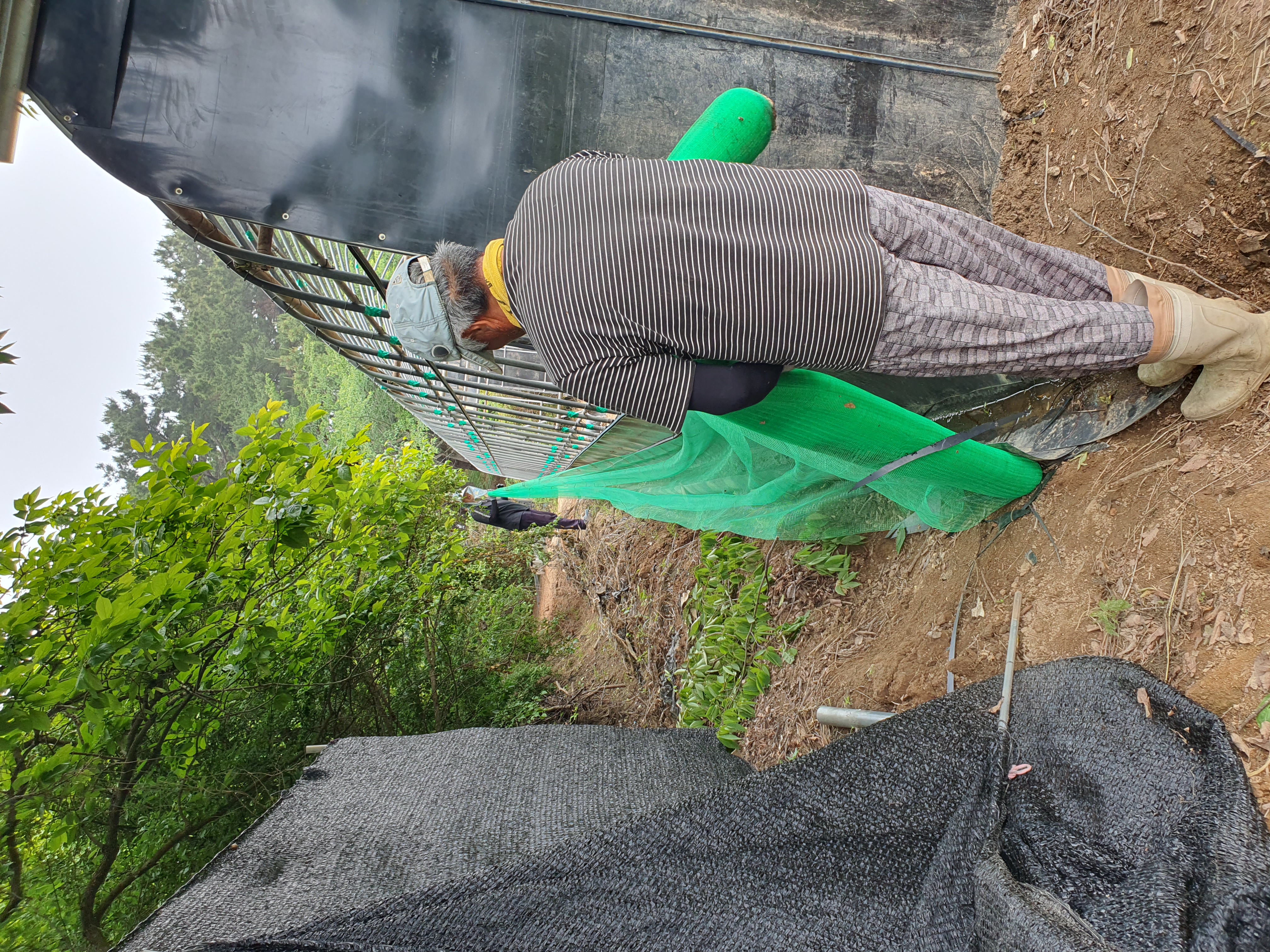 건조하우스 비닐과 차광망 씌우기 아들과 아버지