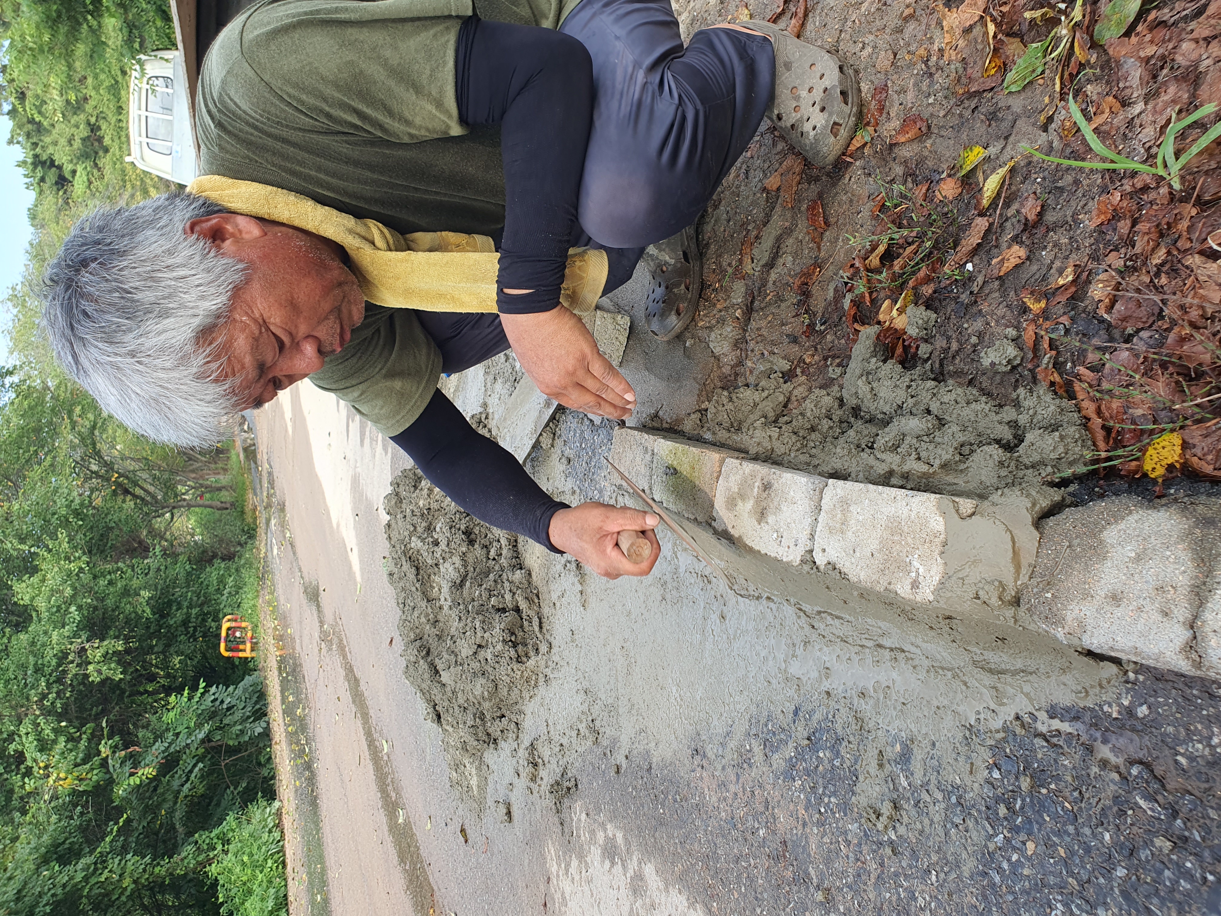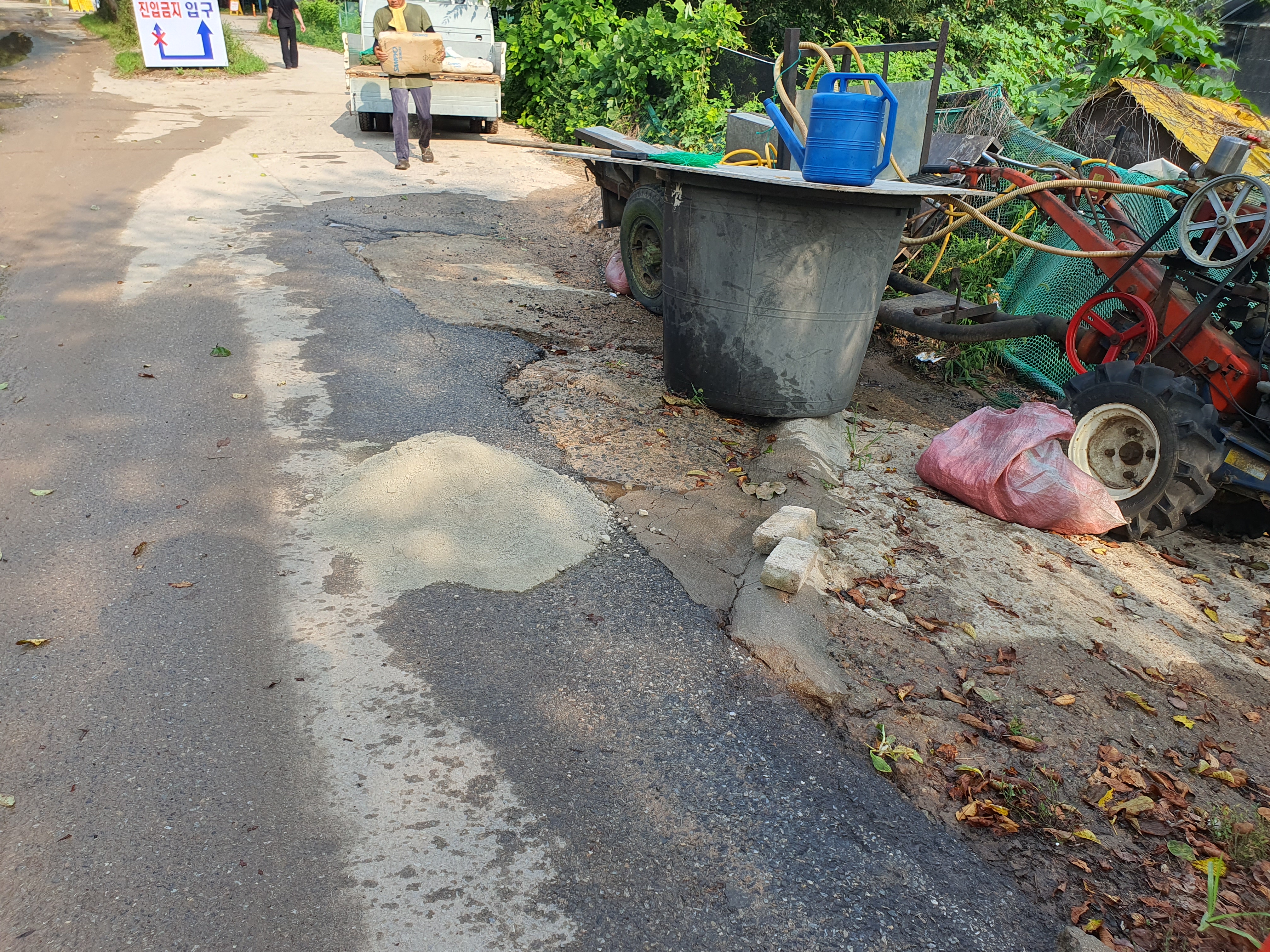 도로에서 밭으로 물 내려오는것 막으려고 준비