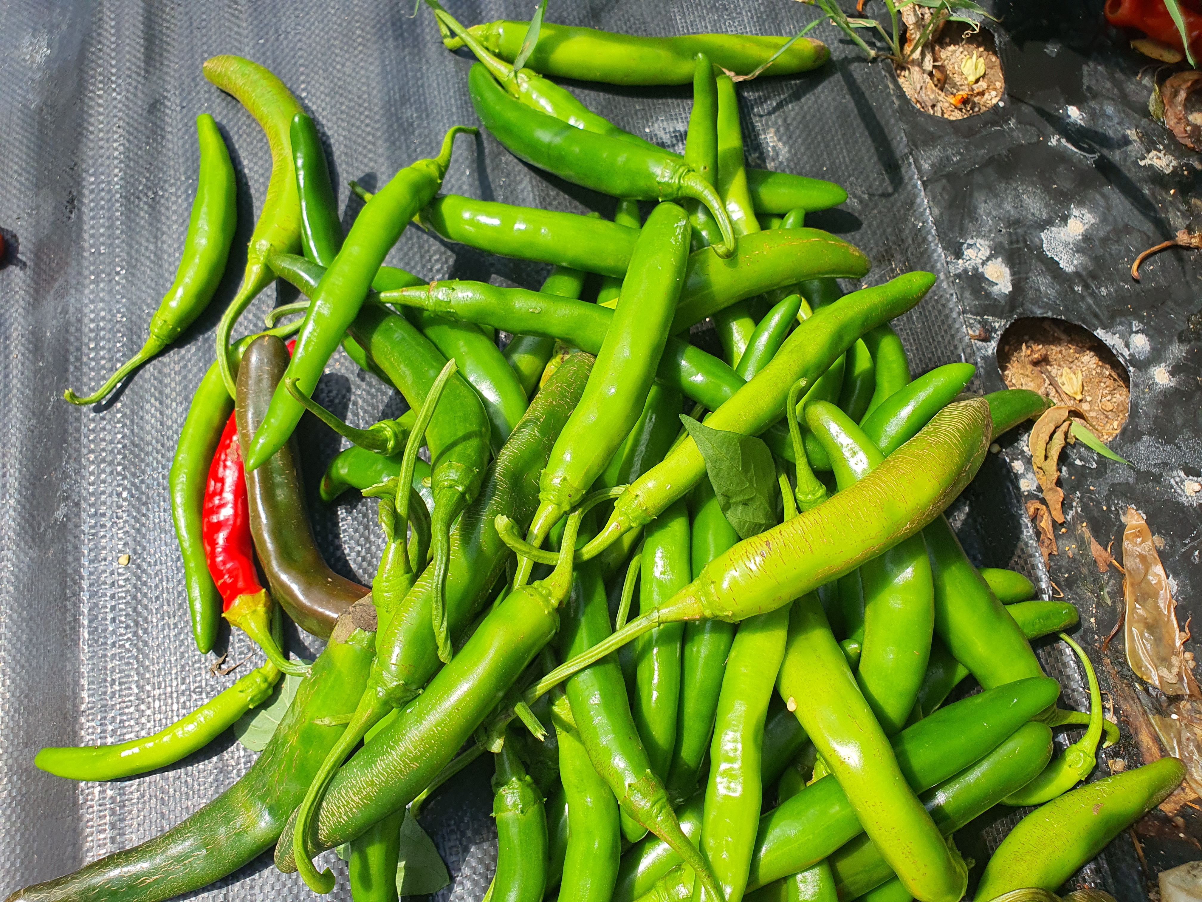 미인고추 가지 자른거에서 고춧잎 땄어요