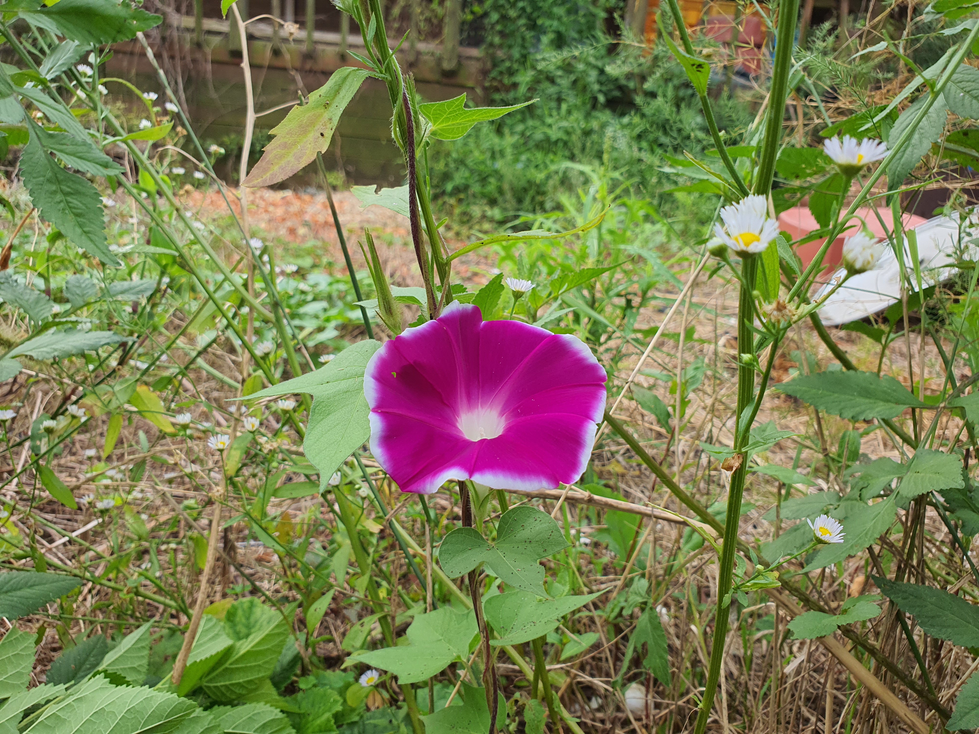 마당에 저절로 빈 나팔꽃