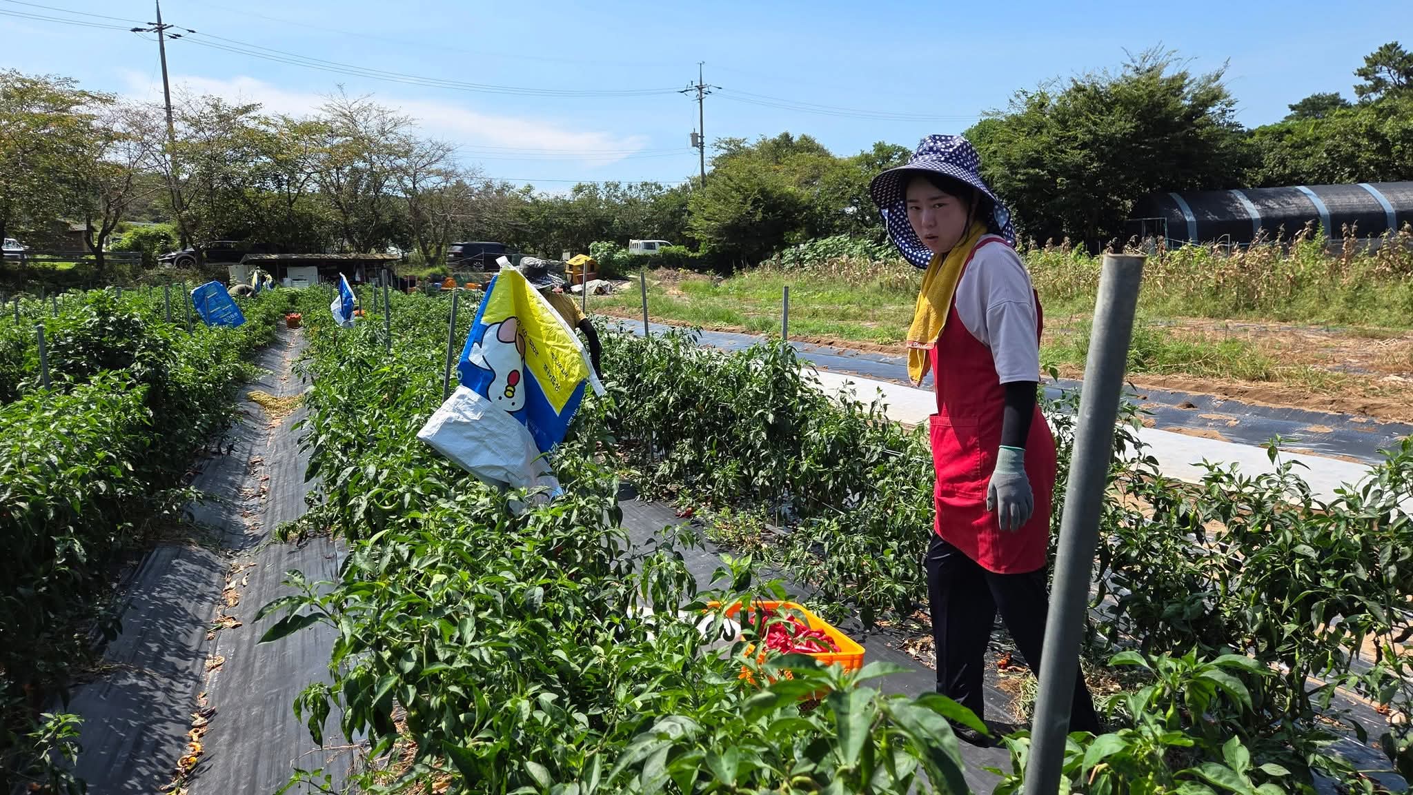 다섯이 오전에 고추를 따고