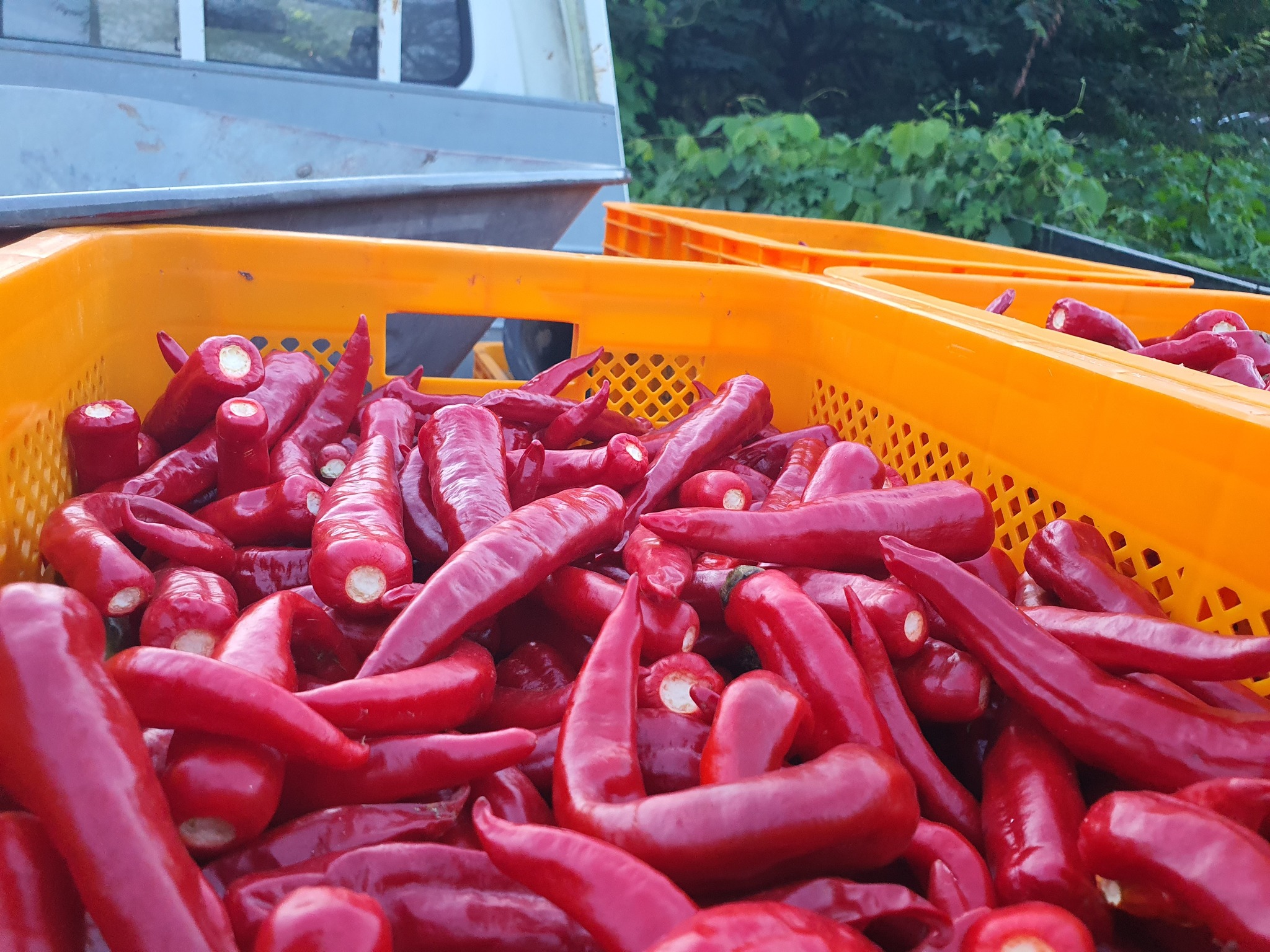 수확한 고추 차에 싣고 집으로