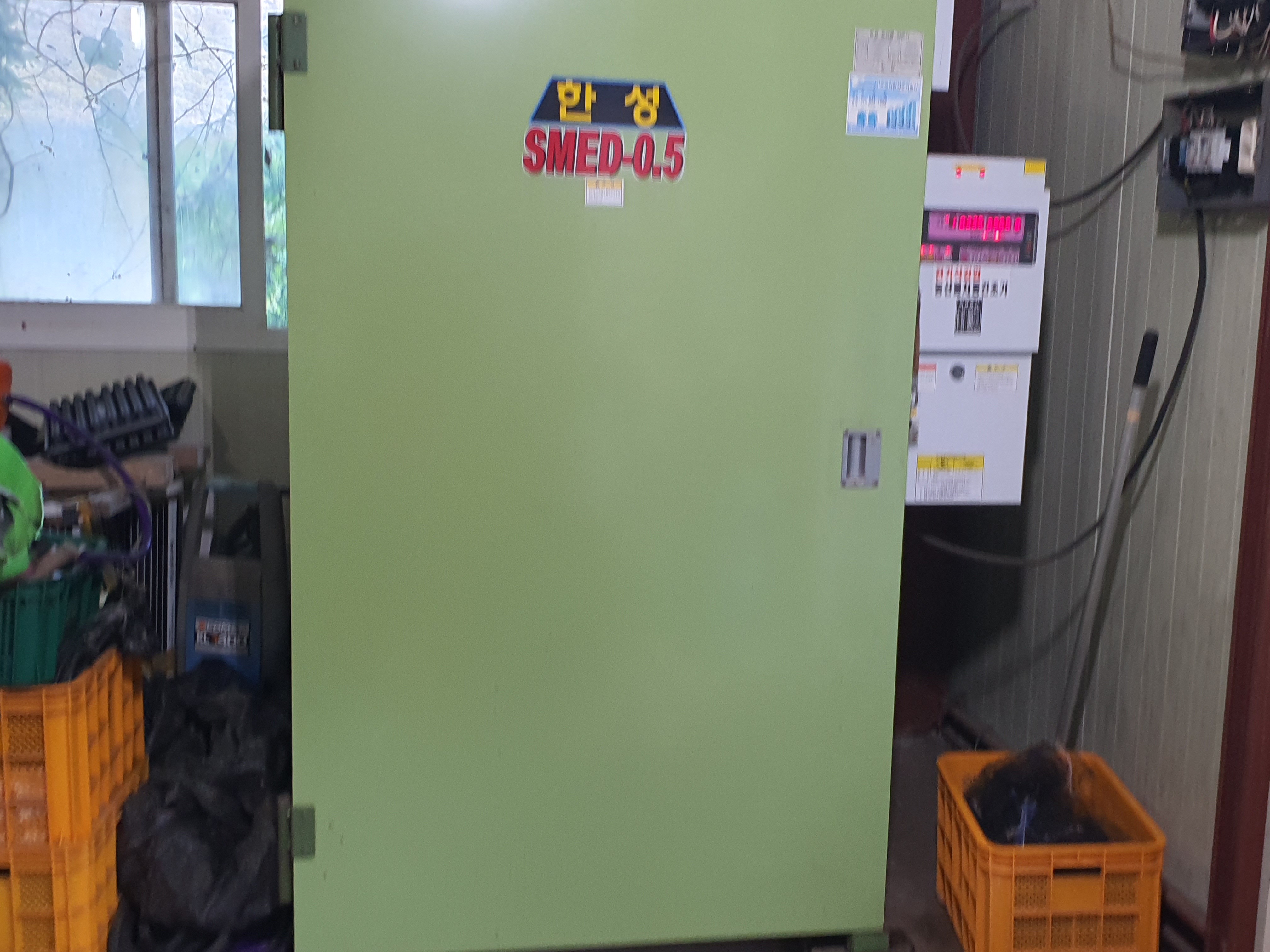 건조기에 고추 말리고 있습니다.
