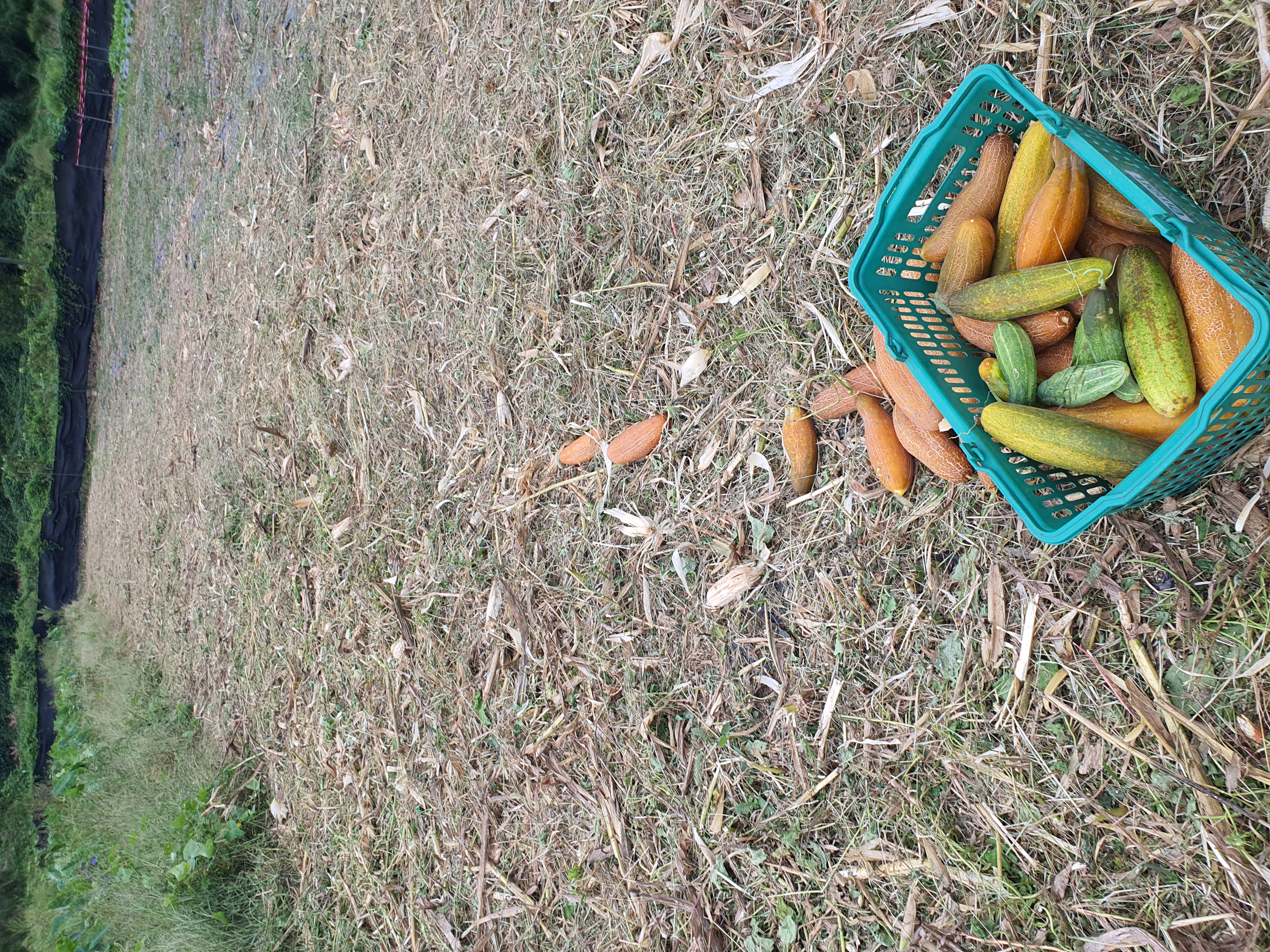 #토종오이 따놓은것 바구니에 담아 옮기고