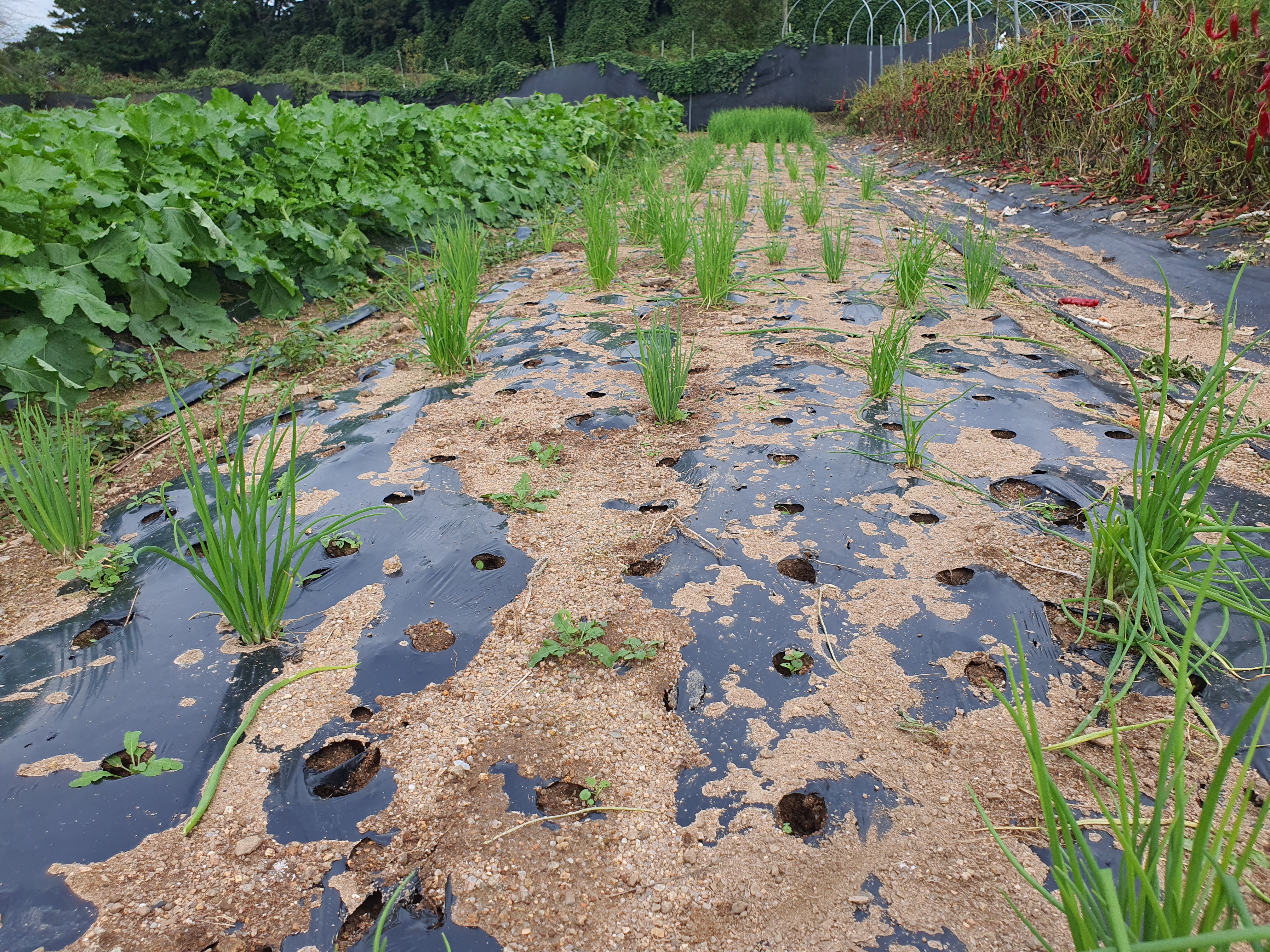 쪽파 심은것 까치가 뽑아놓으면 농부는 다시심고 이틀전에심은 쪽파가 삐죽이 고개들고
