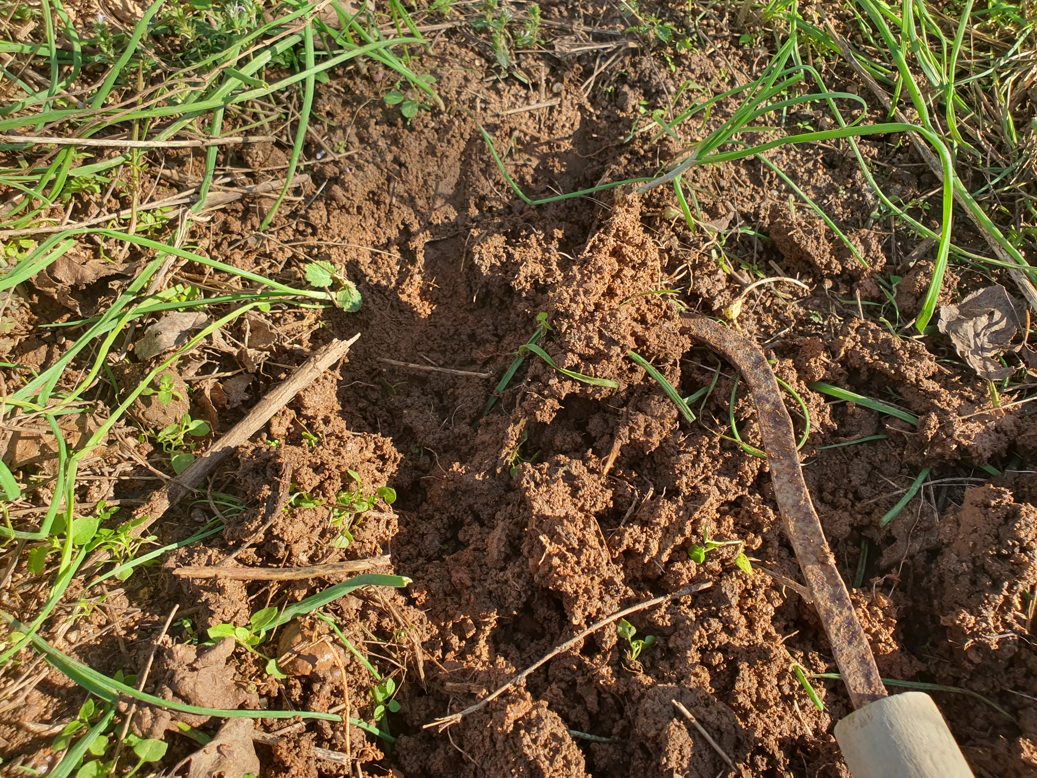 계속 비가내려 땅이 질척거려 호미에 흙이 달라붙어