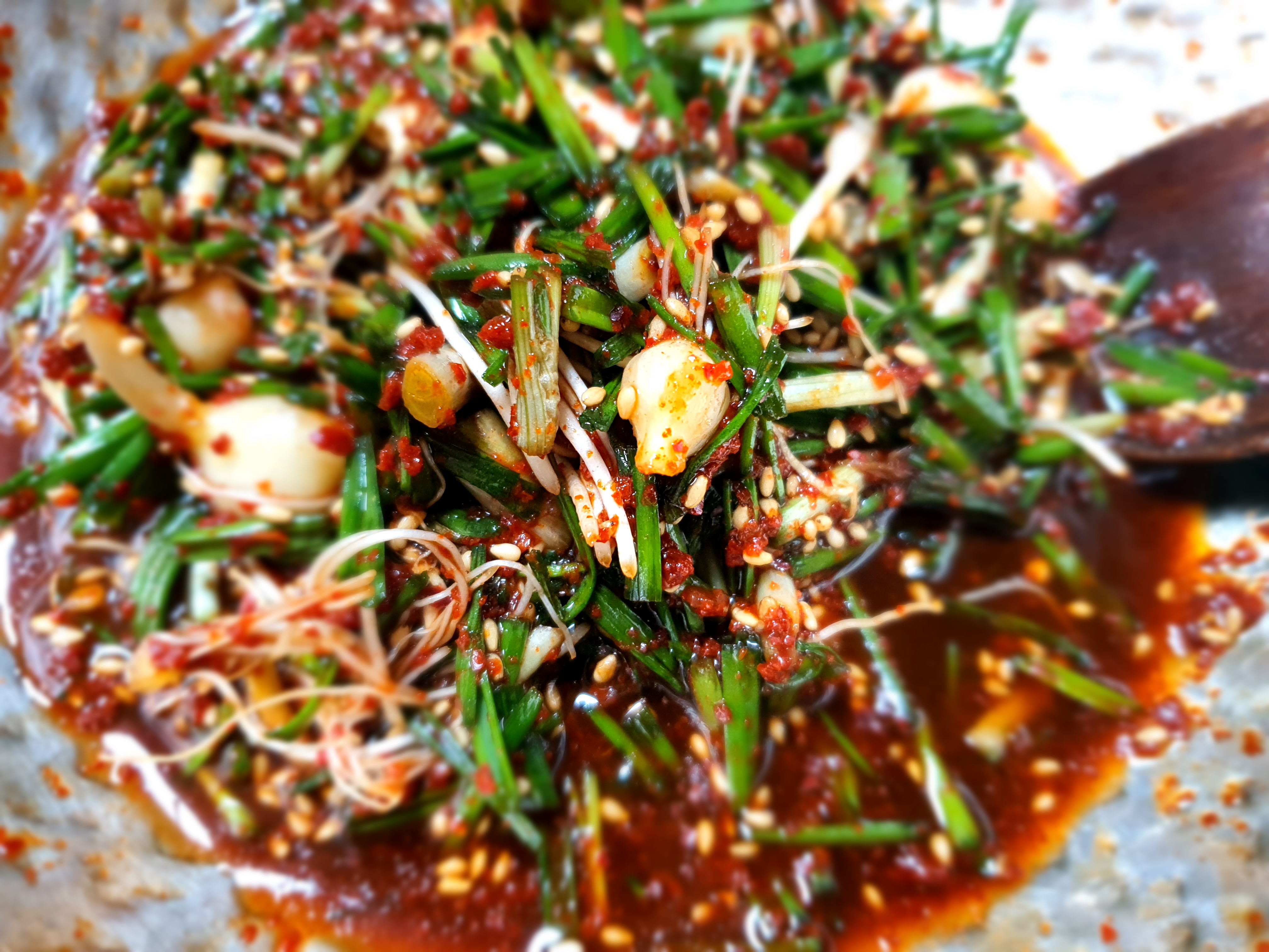 달래 쫑쫑썰고 포도식초.매실,고추가루,참깨솔솔