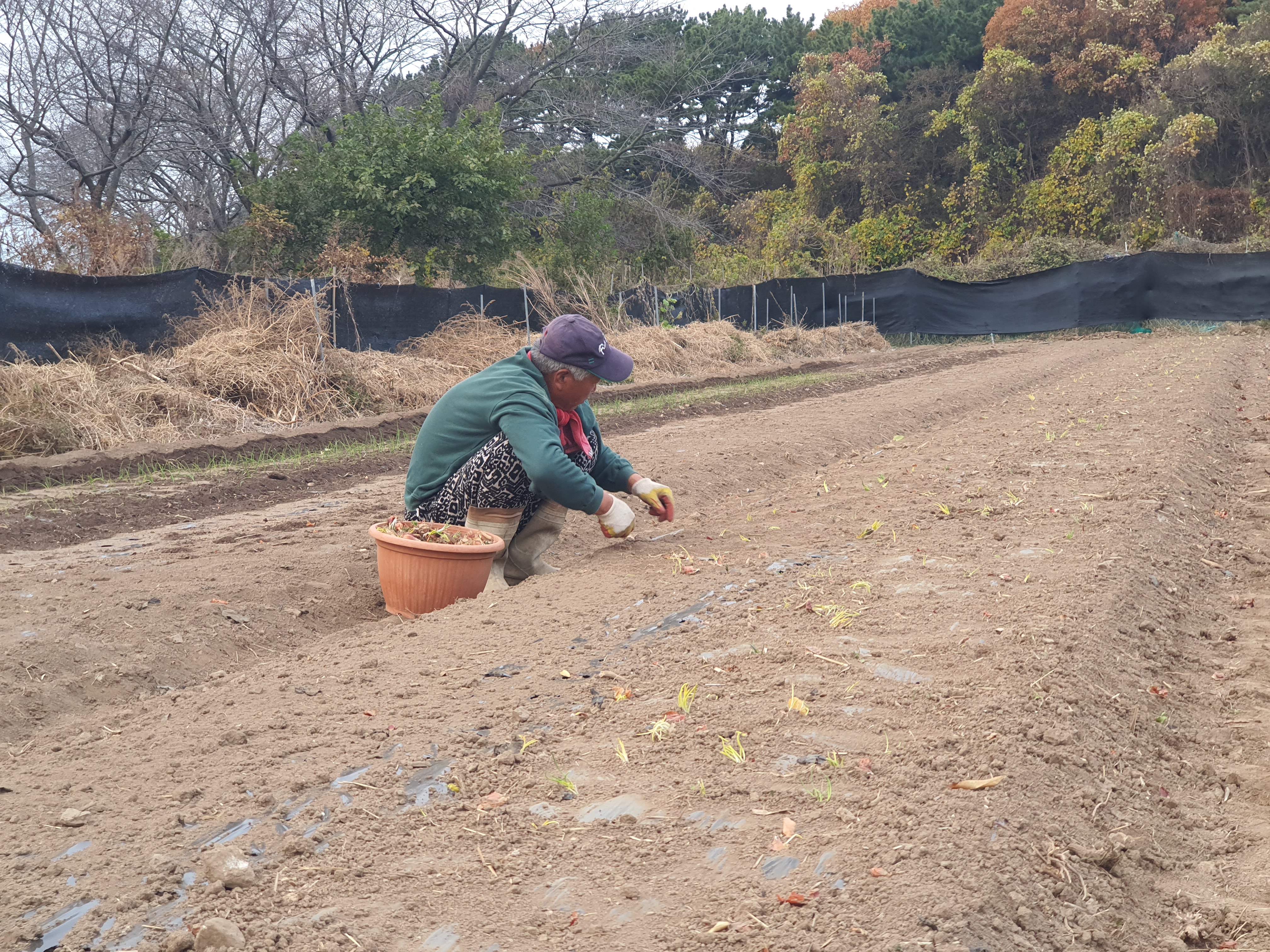 내년에 쪽파종자로 팔려고 하는데 풍년이 되기를 염원하며 농부 둘이 추위에 아랑곳하지 않고 열심히 심습니다.