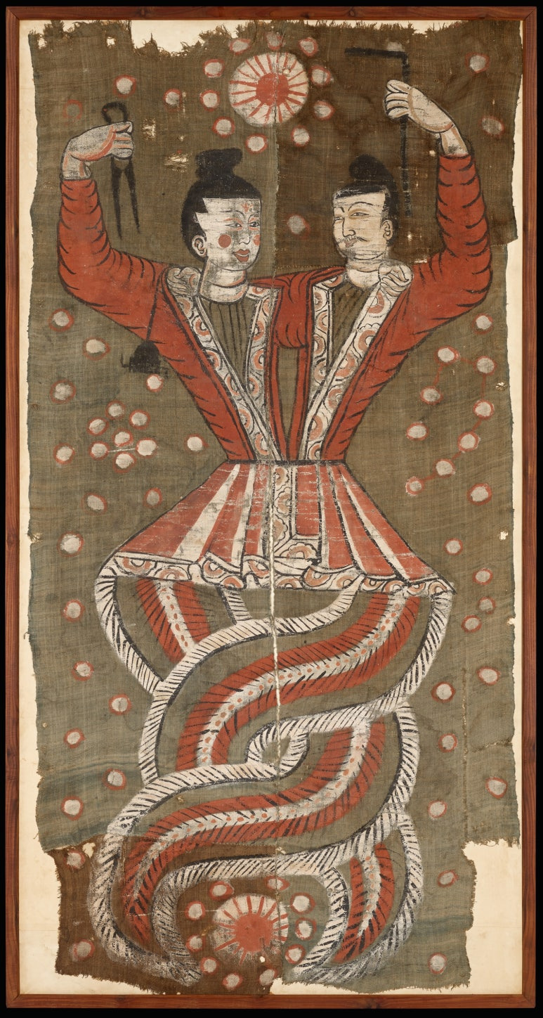 국립중앙박물관에 소장된 '복희 여와도'다.그런데 그들이 들고 있는 콤파스와 삼각자가 악당의 세력 딥스의 로고가 된 것이 아아러니다.무슨 사연이 있었을까?
