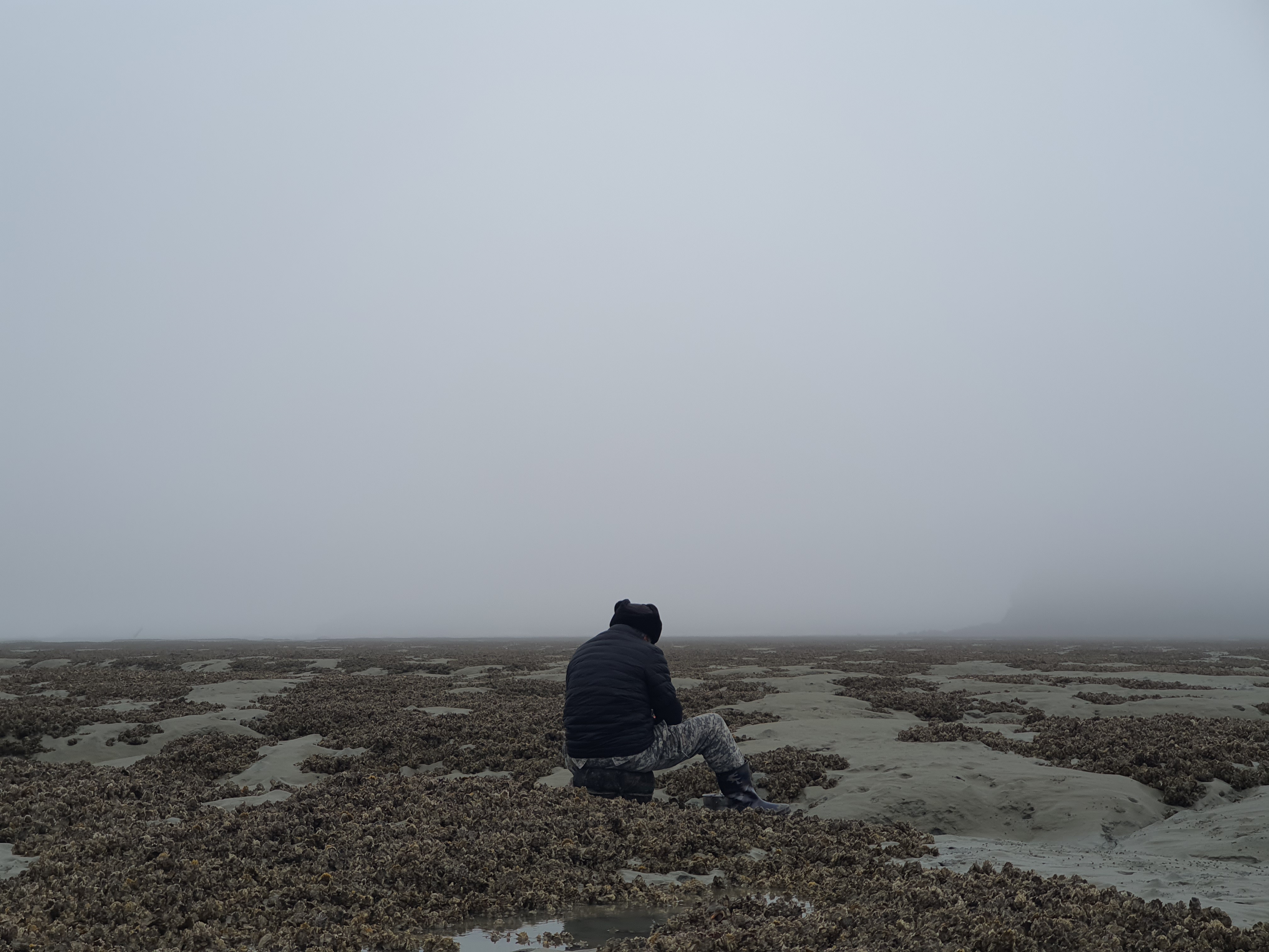 굴따는 신순규 어부와 안개