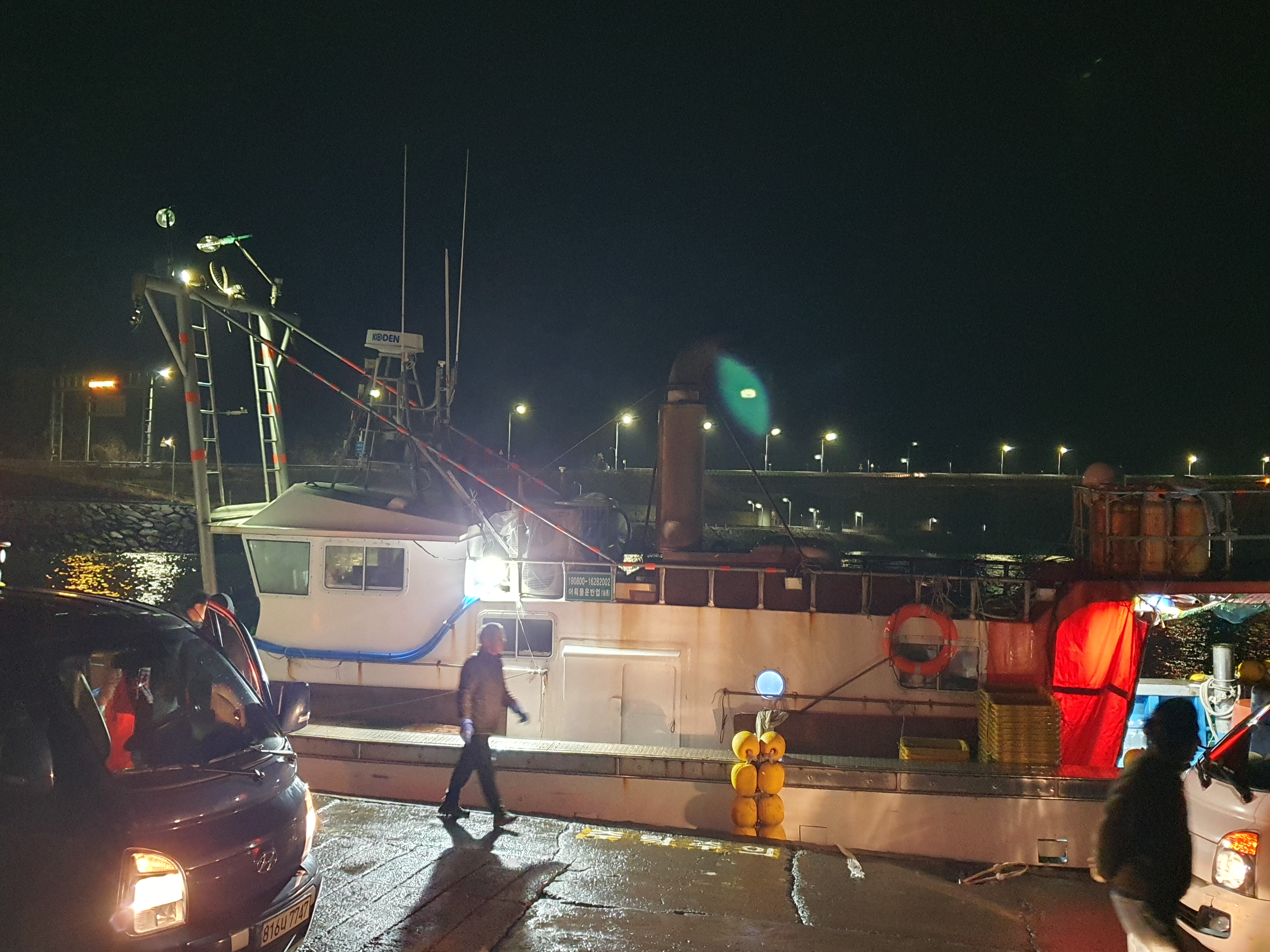 고기배들 물건을 푸는 모습