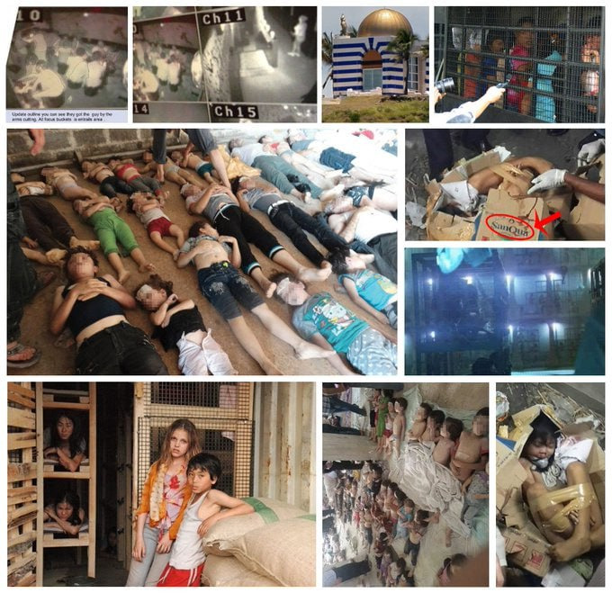 세계 각처에서 납치되어온 어린 아동들이 엡스타인 섬 지하 동굴에 갇혀 있는 모습.이들이 인간일까?