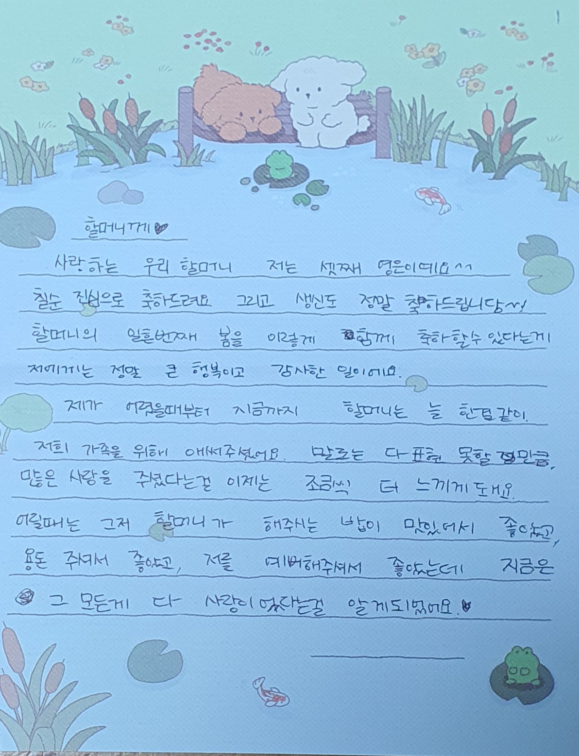 | 할머니 칠순에 손녀 영선이 편지 (0) | 2026.02.17 |