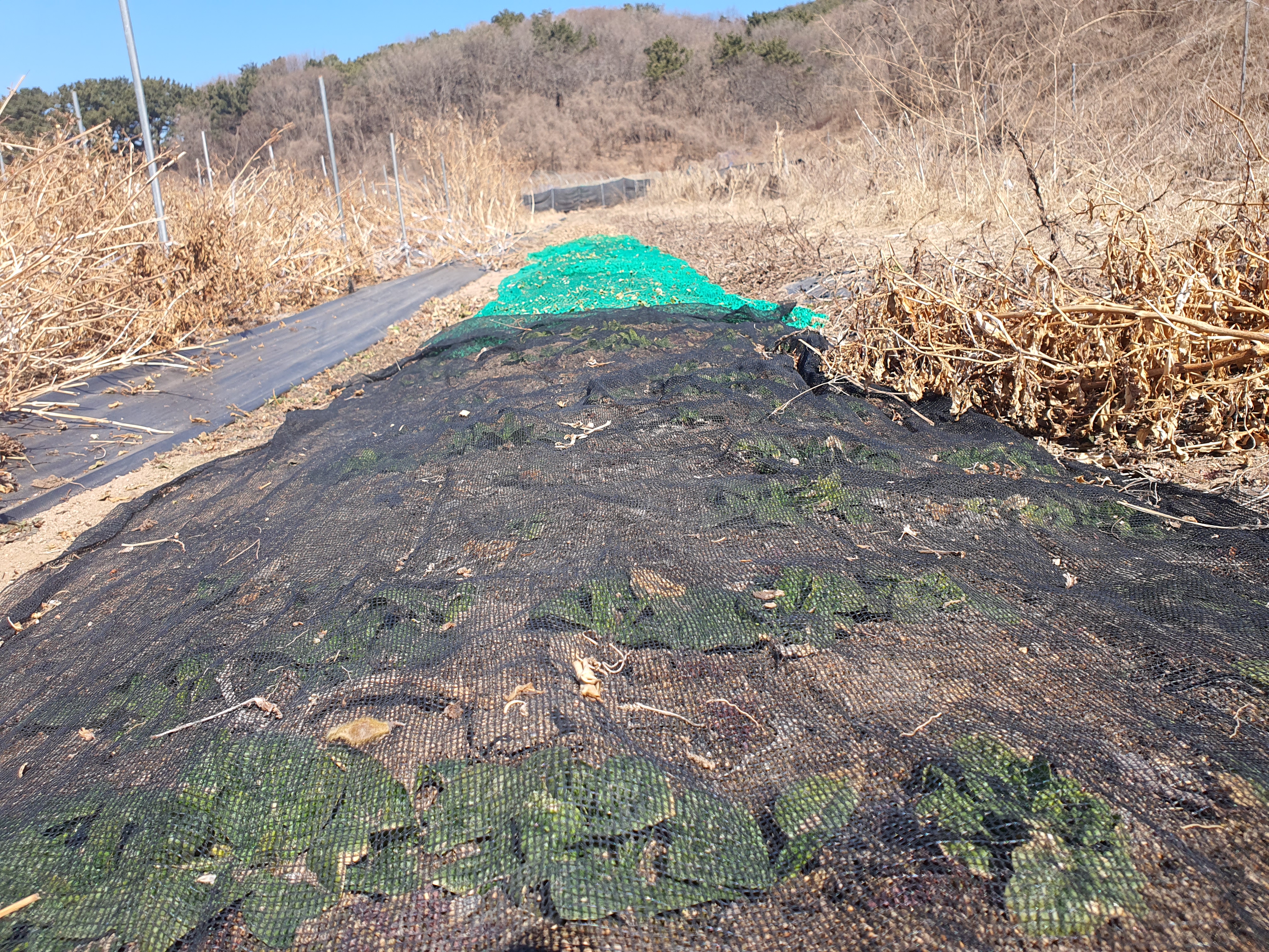 양지바른곳은 녹아서 비닐 걷어내는 중