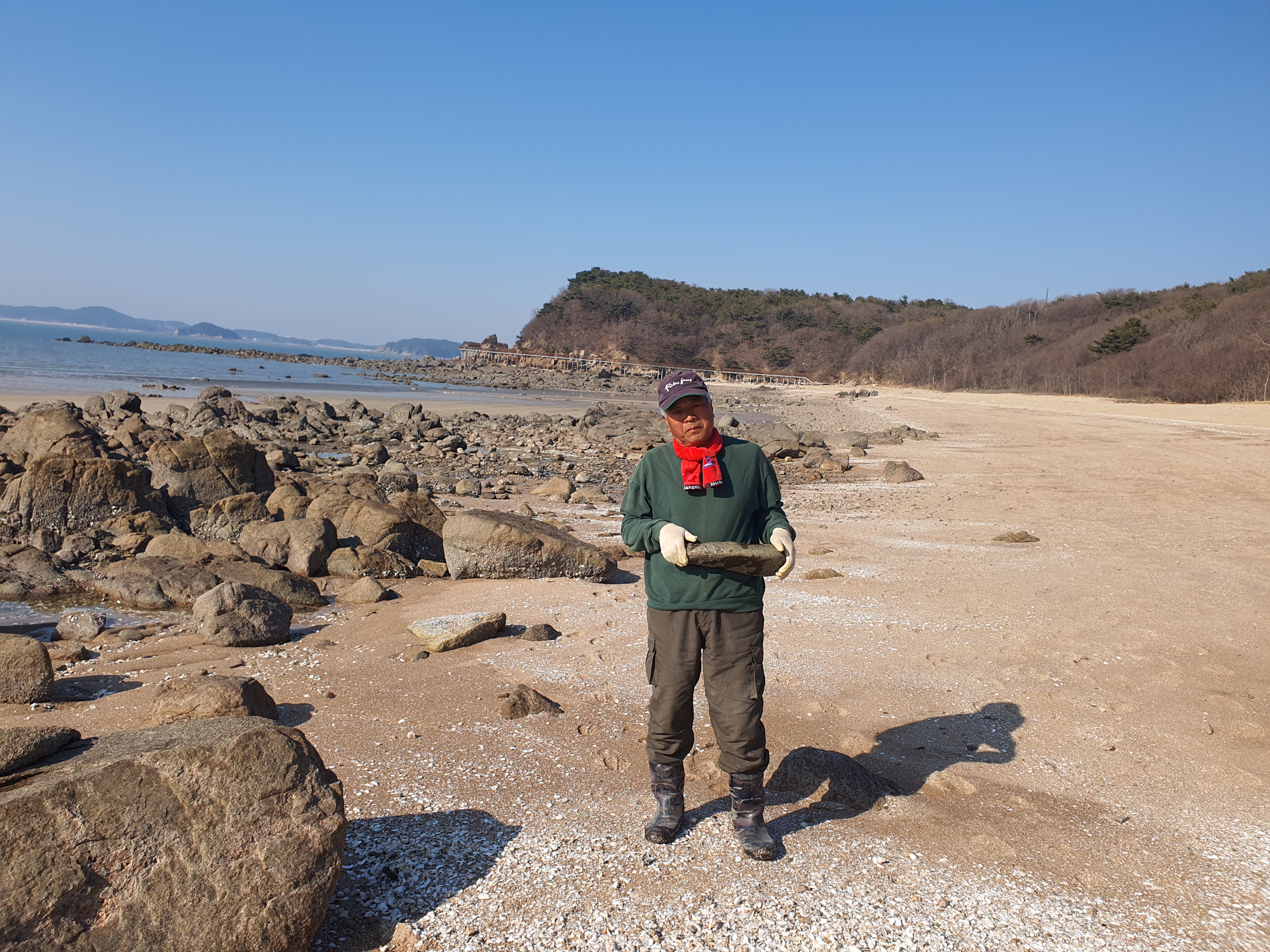 화덕만들기 벽돌7단 쌓기, 바닷가에서 돌 주워오기