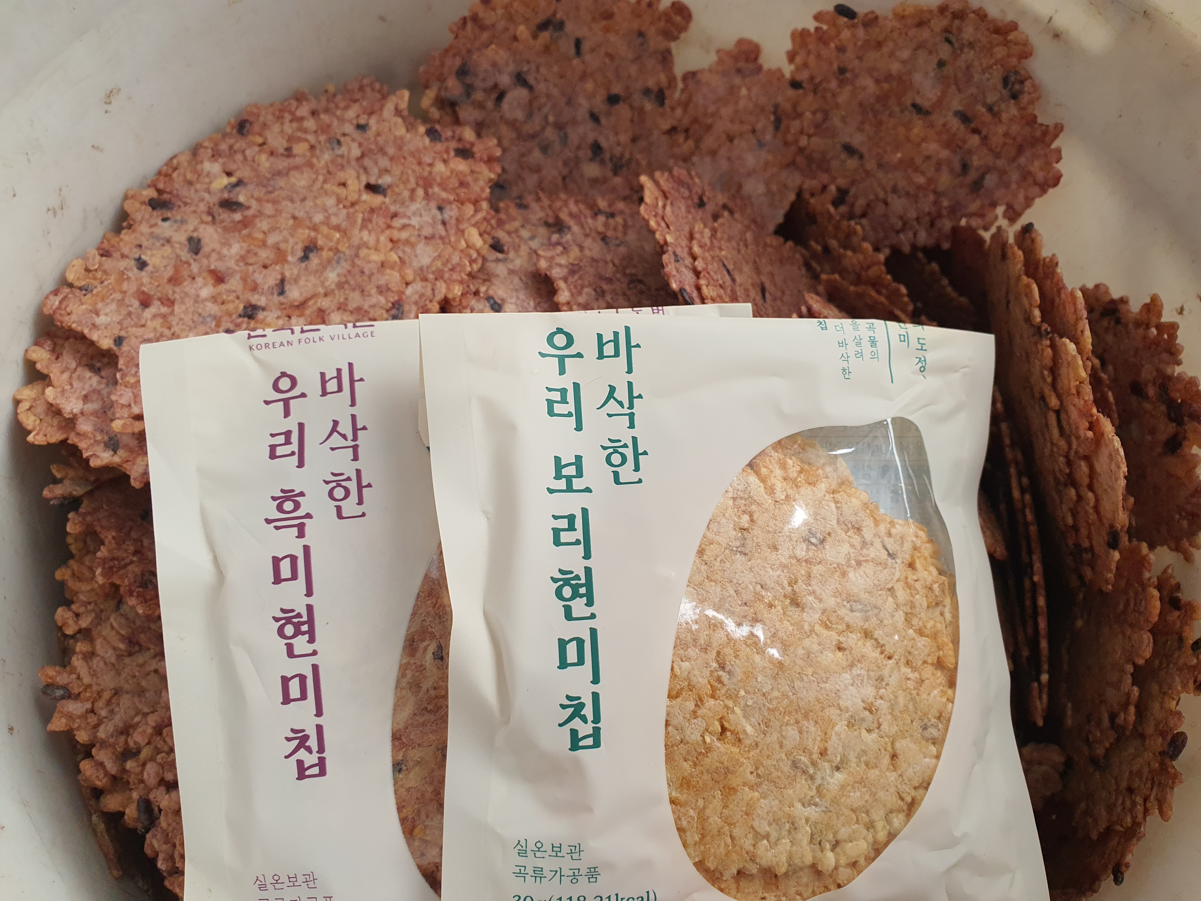 닭에게 현미칩도 줍니다. 아주 잘 먹어요