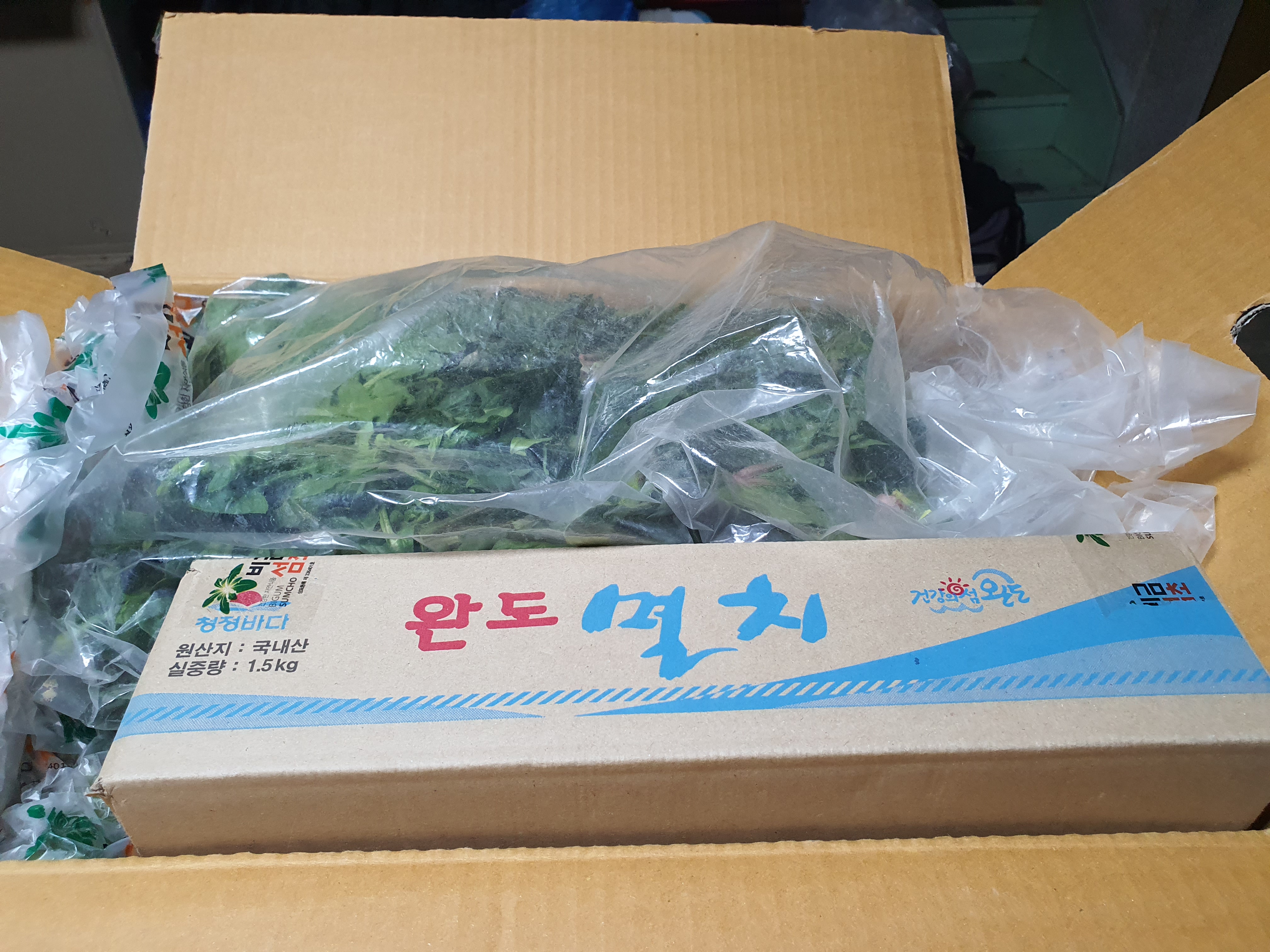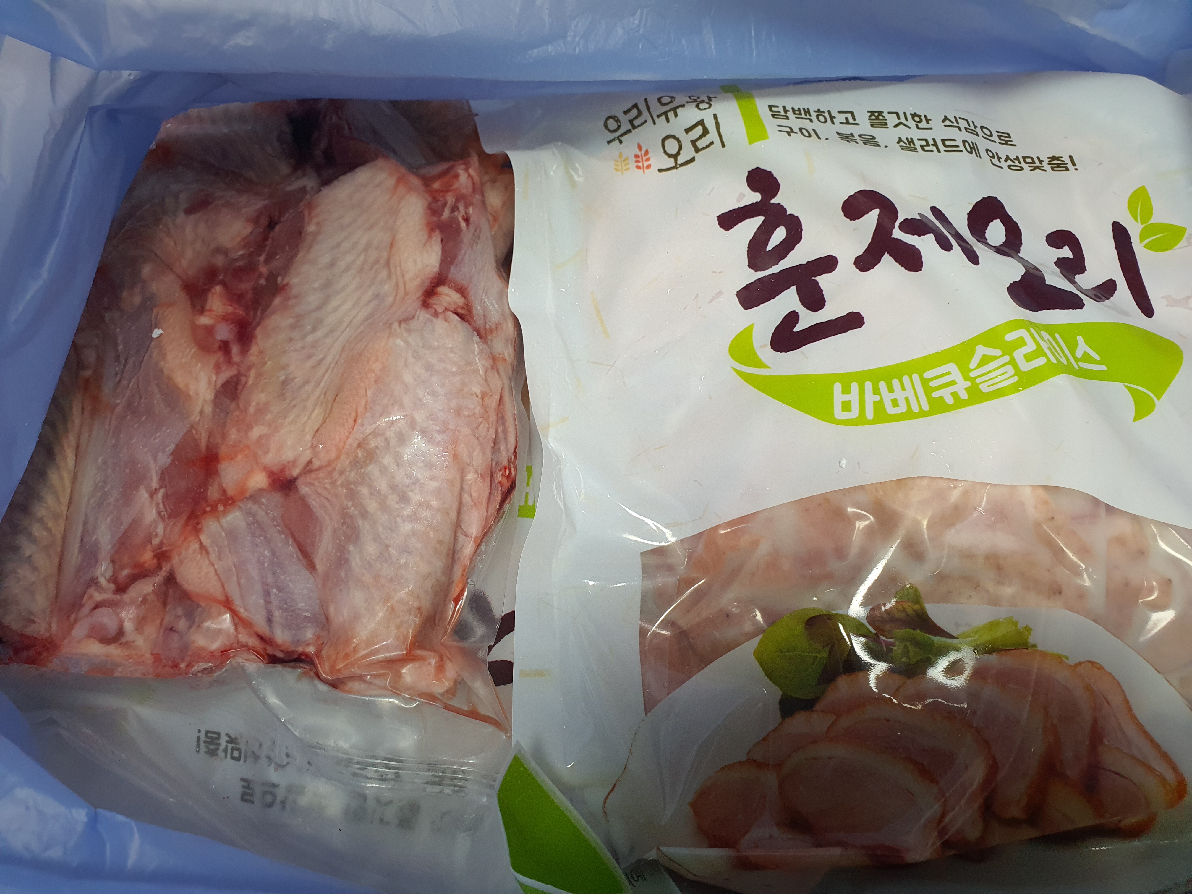 물물교환 자연산굴과 훈제유황오리,비금도시금치와 다시멸치