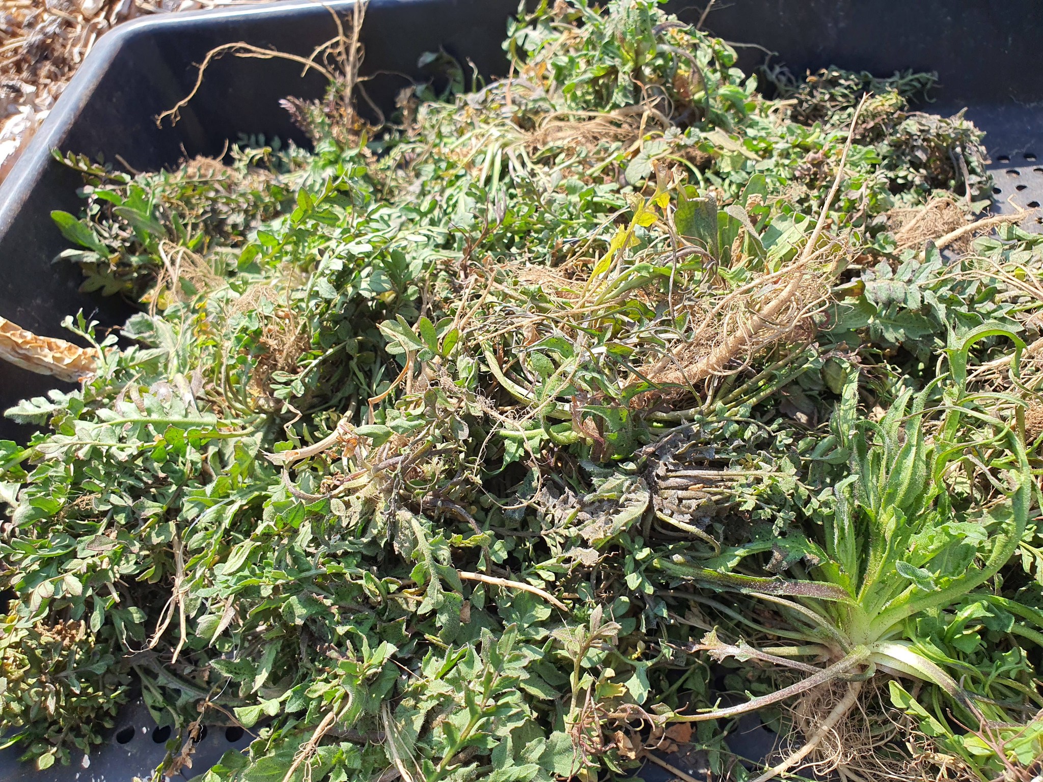 부직포 걷어내며 뽑은 냉이