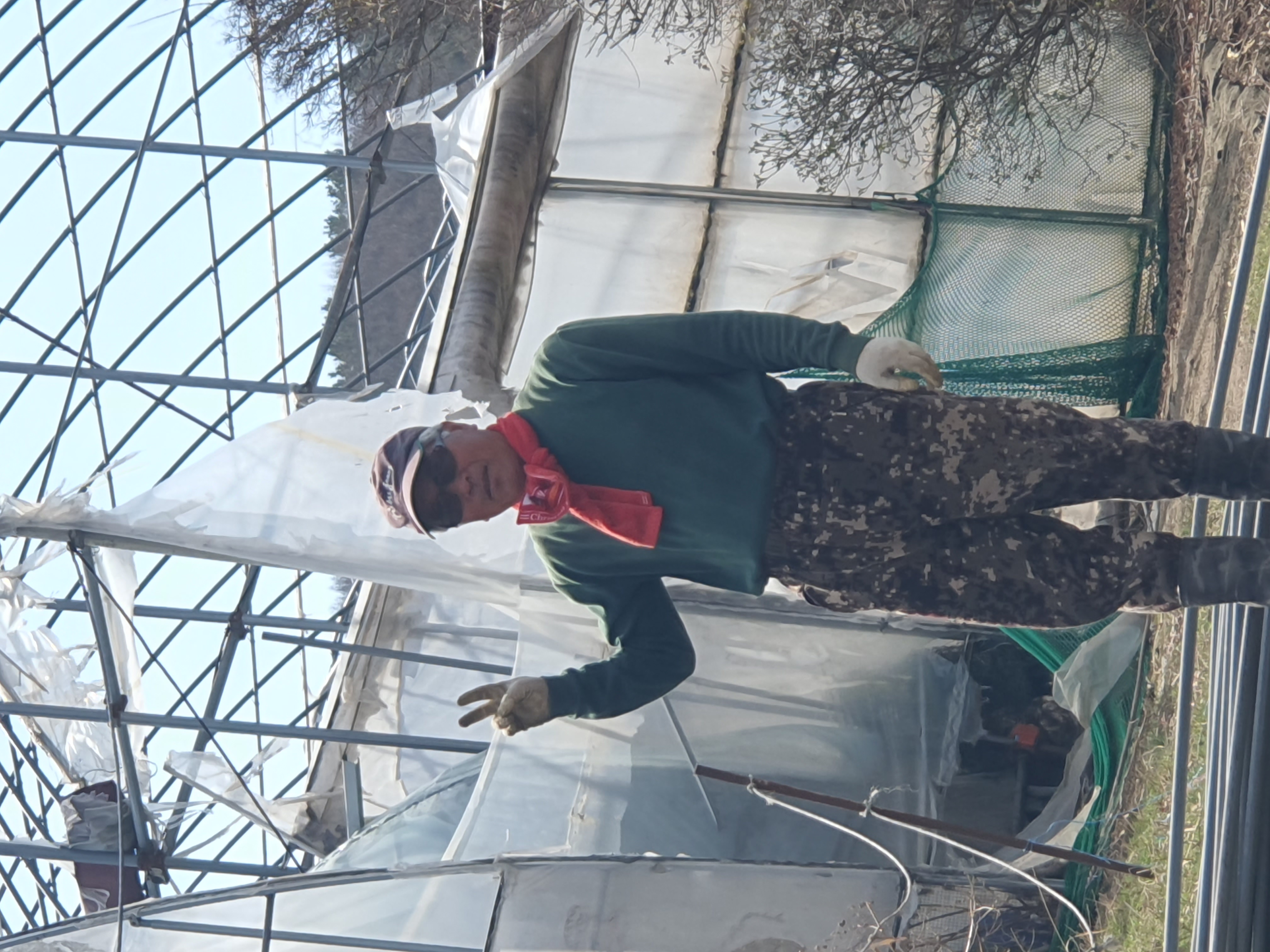 그곳의 하우스를 해체하여 밭으로 옮겨 넝쿨식물 심을곳에 옮겨 설치하려고 옛것을 해체하는 작업중