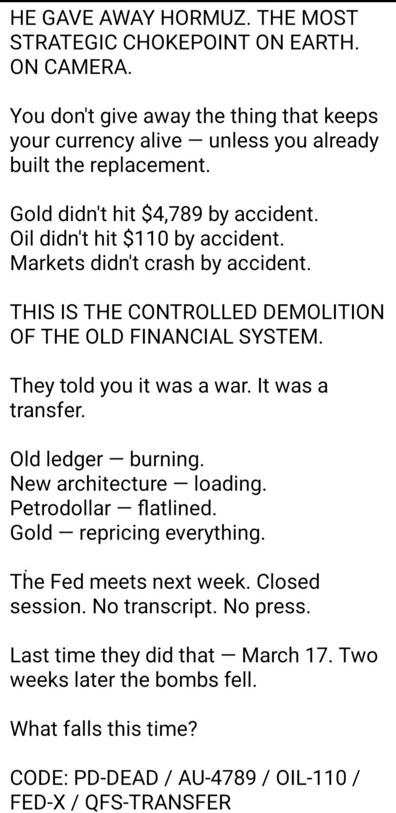 현재 호르무즈 해협에서 대부분의 석유 탱커 및 기타 탱커의 통과가 금지되어 있어 통과하지 않습니다. 그리고 아르토니히토가 4월 6일에 평화를 위해 결전이 열린다고 썼기에 그 내용의 기사를 소개해 드리겠습니다. 호르무즈 해협을 통과할 수 없기 때문에 석유 가격이 점점 급등하고 있습니다. 다만, 그 이면에서는 그 때문에 법정 통화인 미 달러가 해체되고 있다고 전해지고 있습니다.