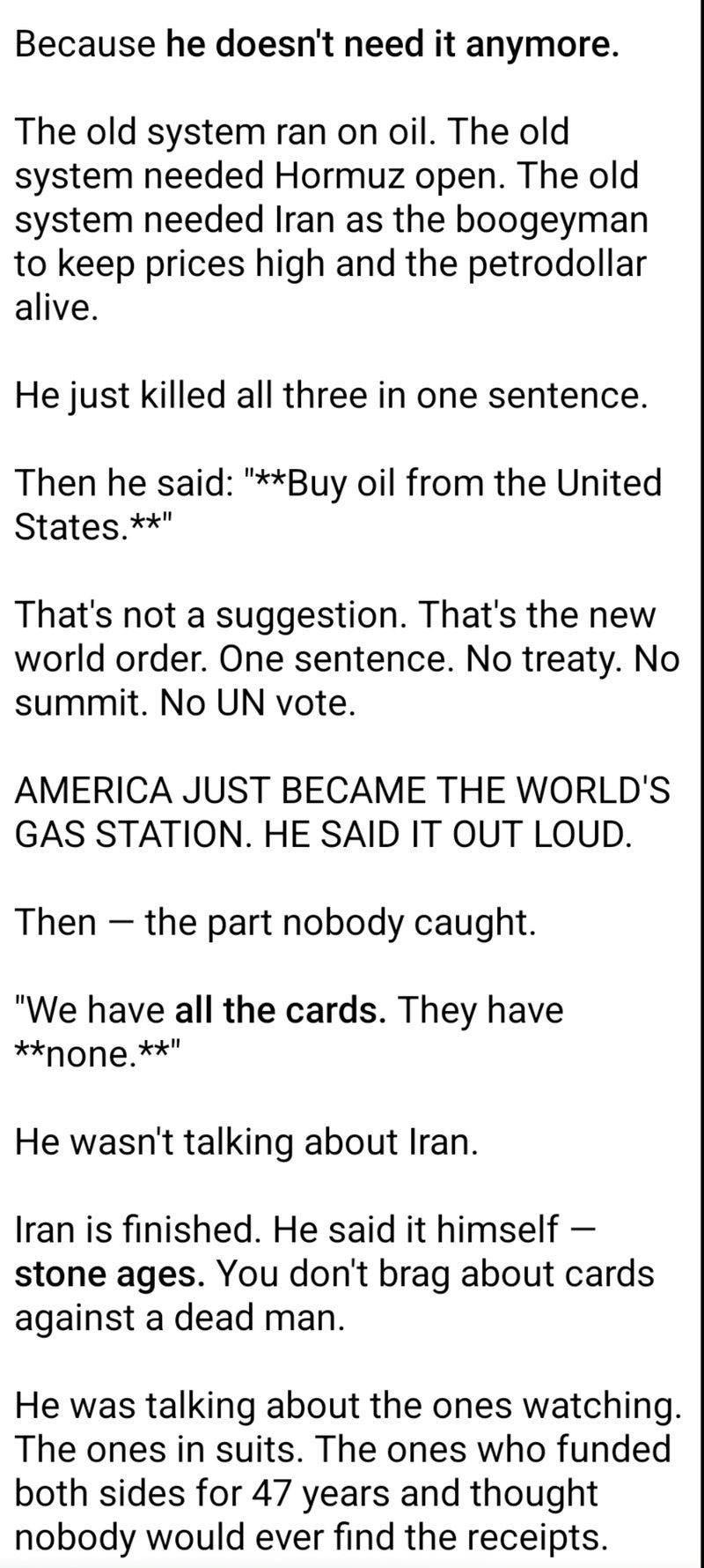 그리고 이렇게 말했습니다. '**석유는 미국에서 사라**'라고.