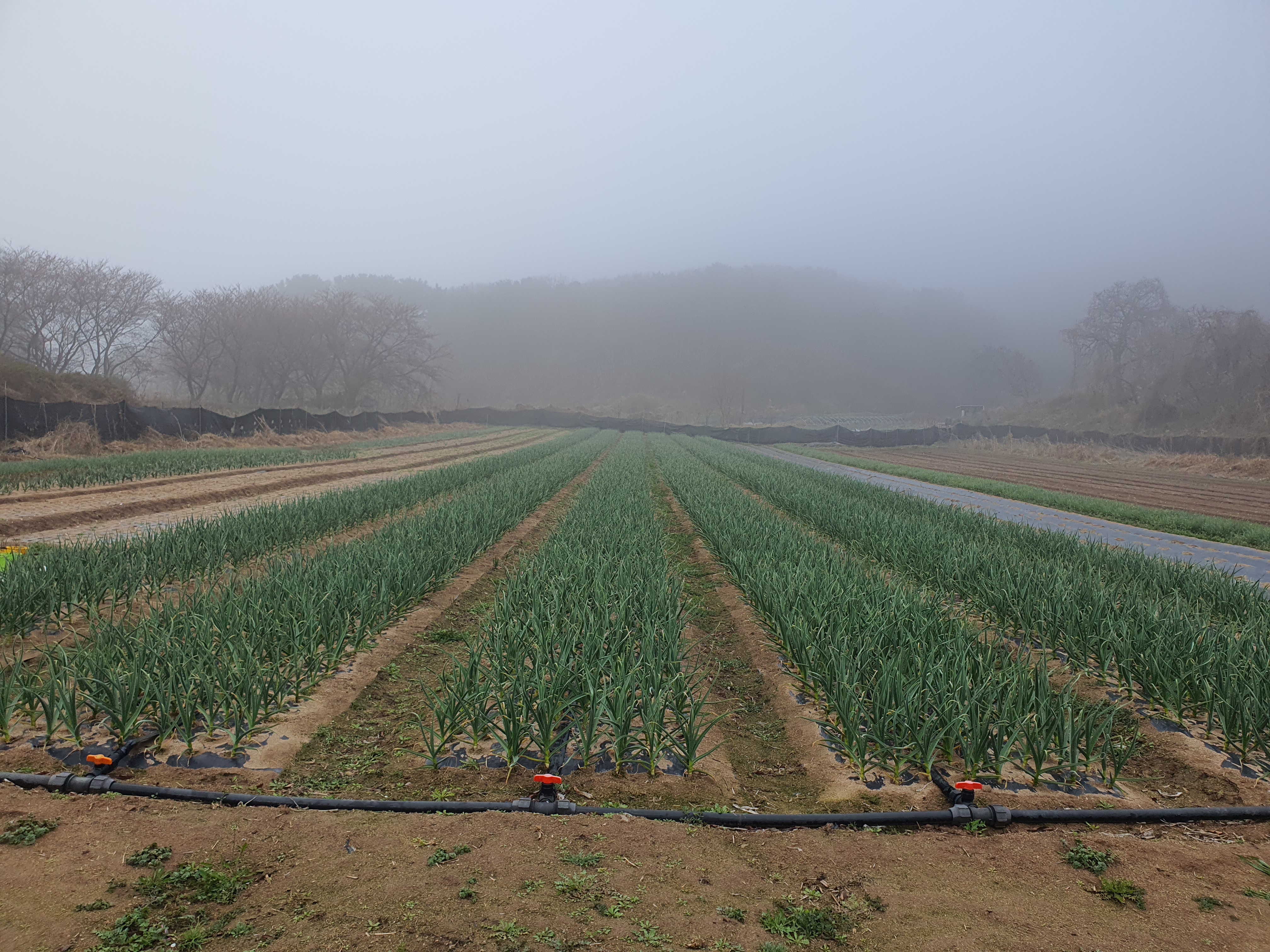 안개 자욱한 밭의 마늘을 보니
