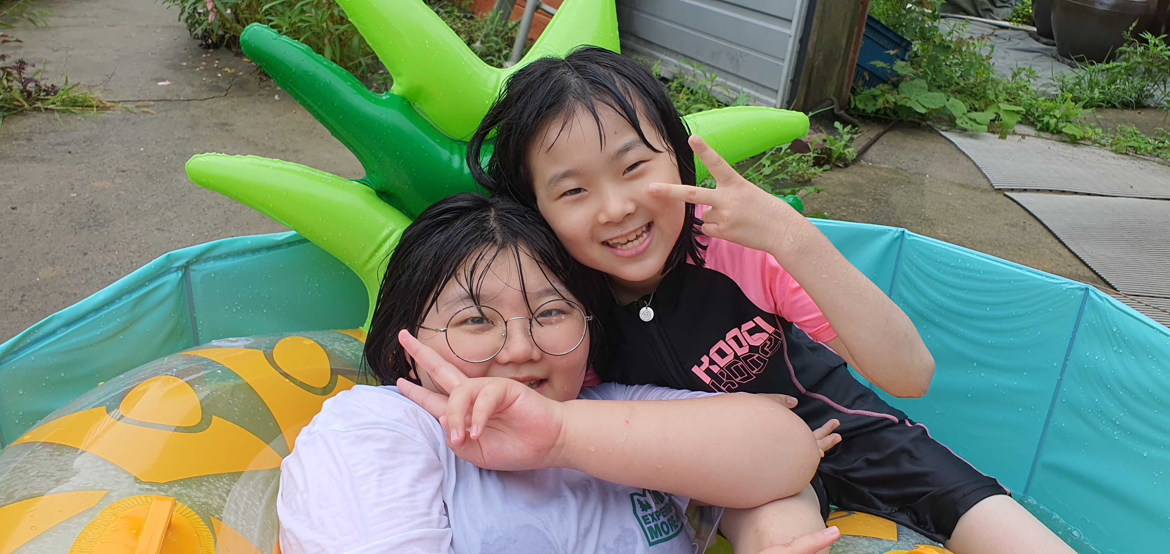 방학하여 손녀 3명이 무의도 집에와서 #마당수영장 에서