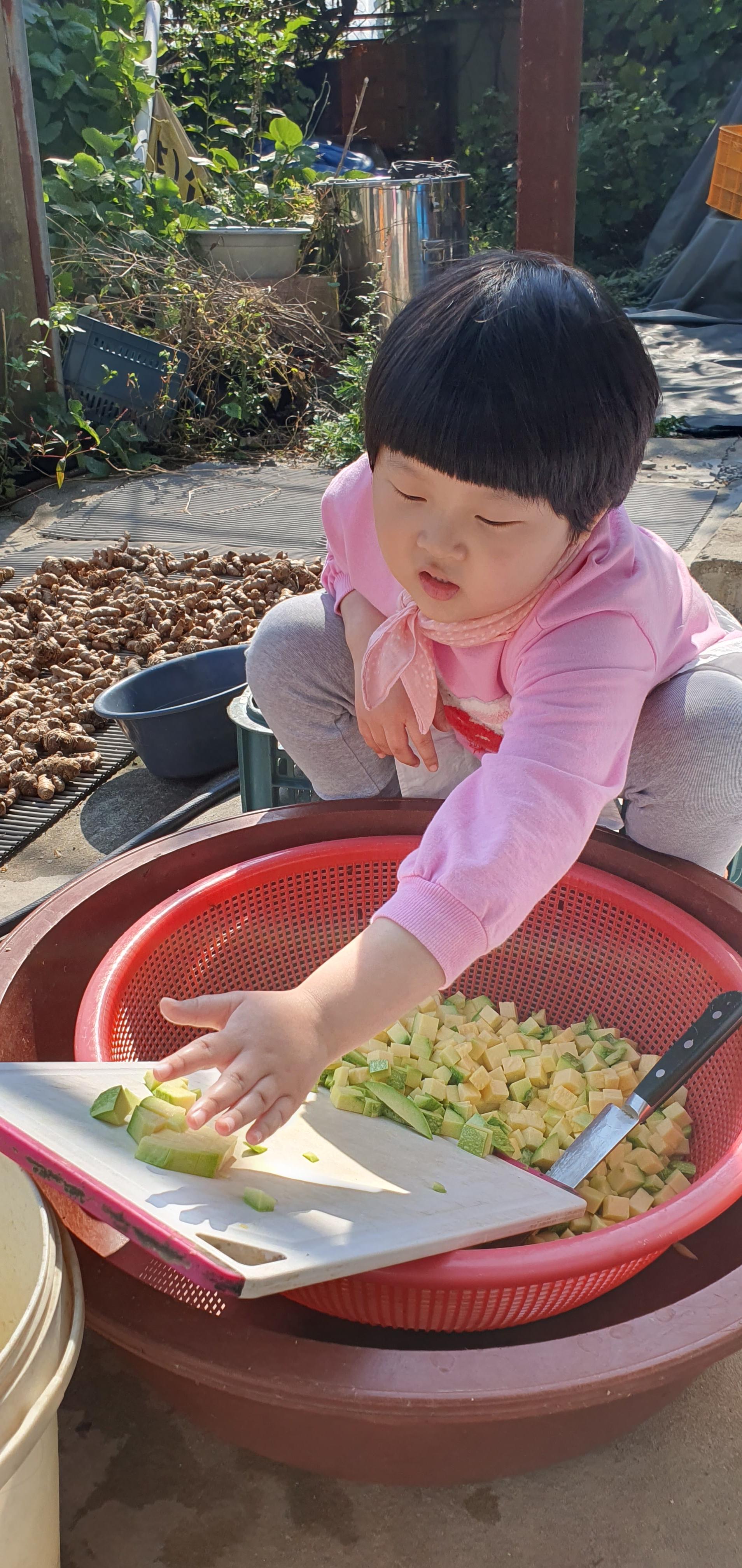 호박썰어말리기 손녀 기영이와