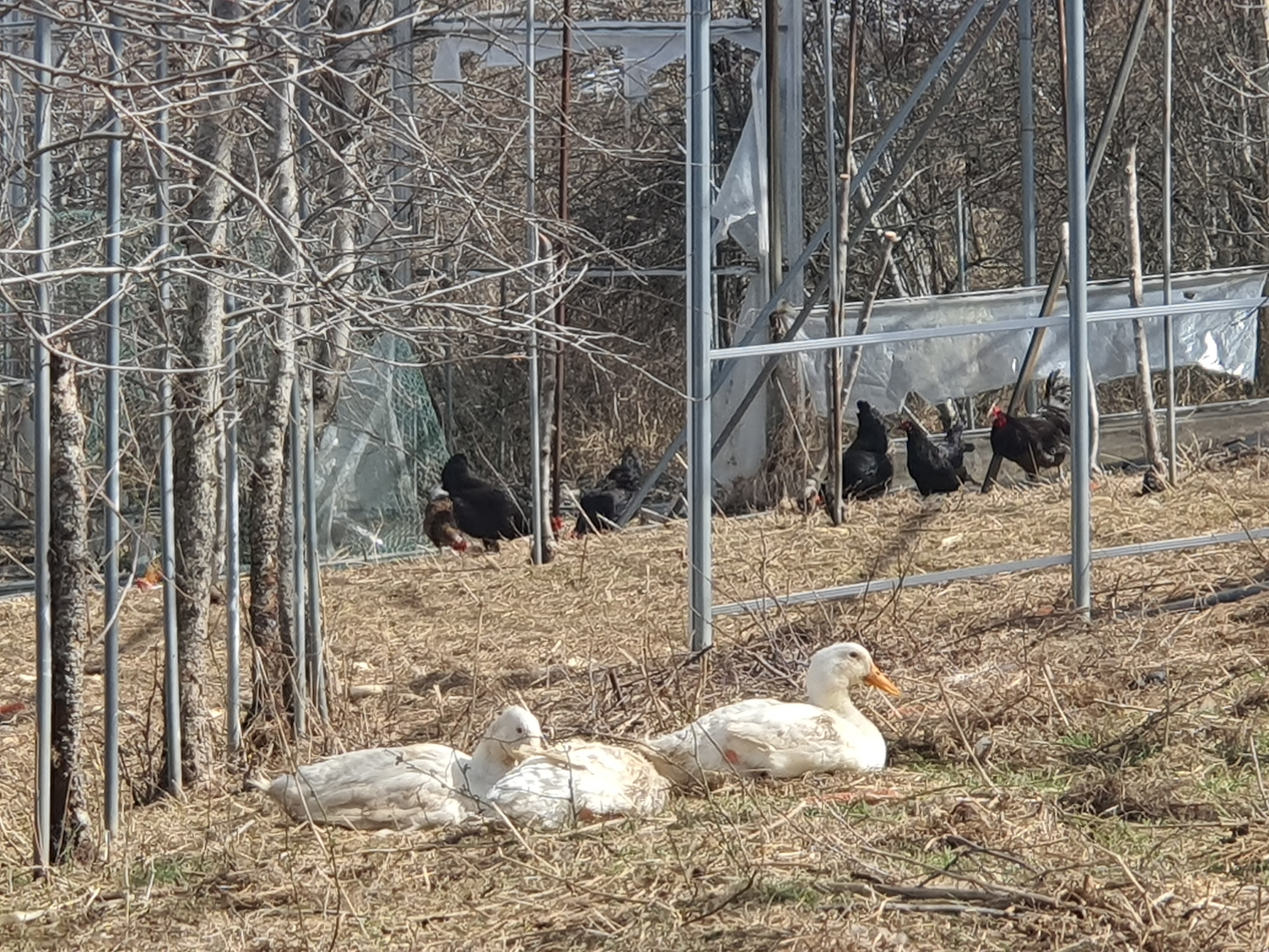 거위와 오리는 흙에 엎드려