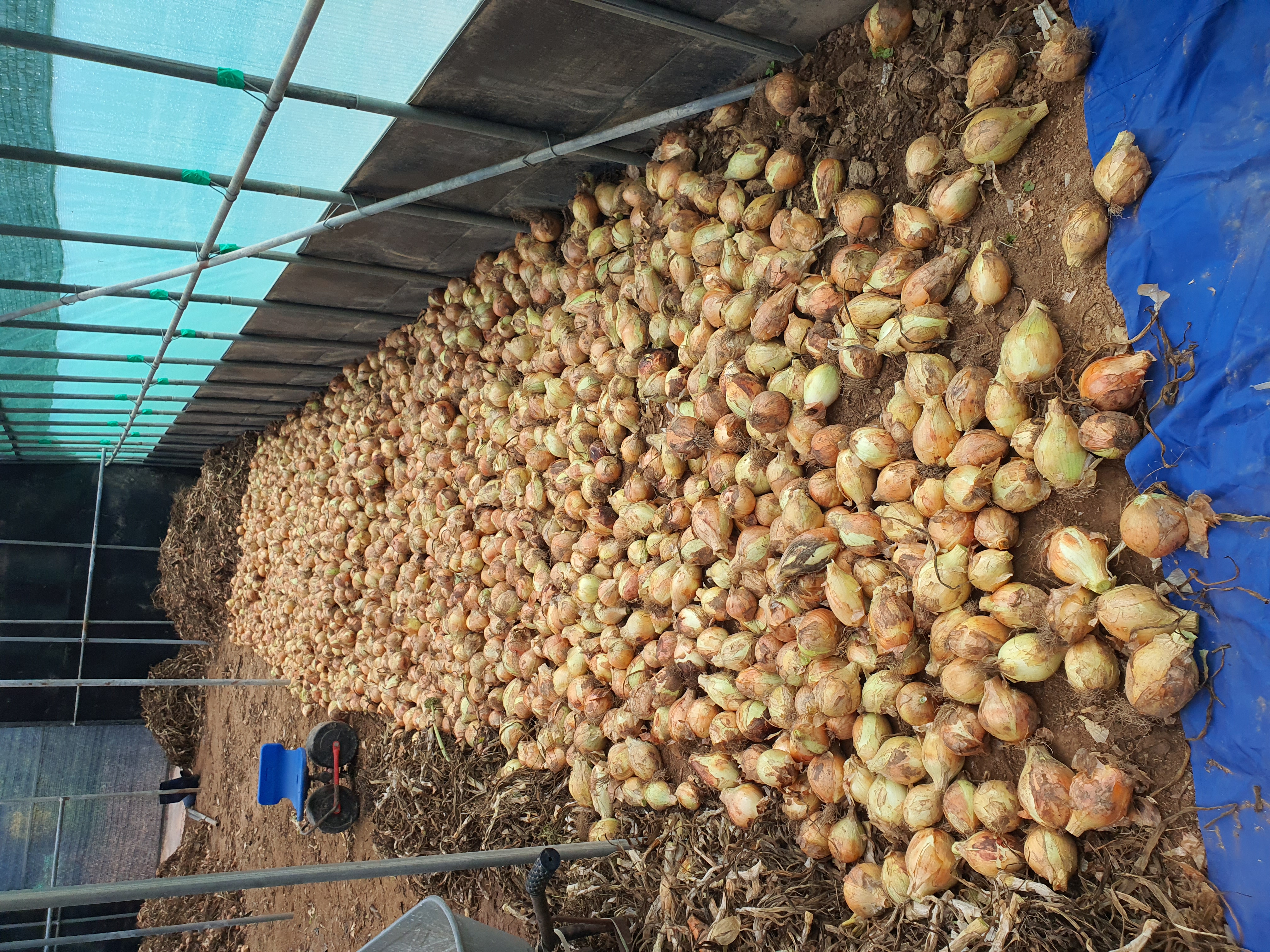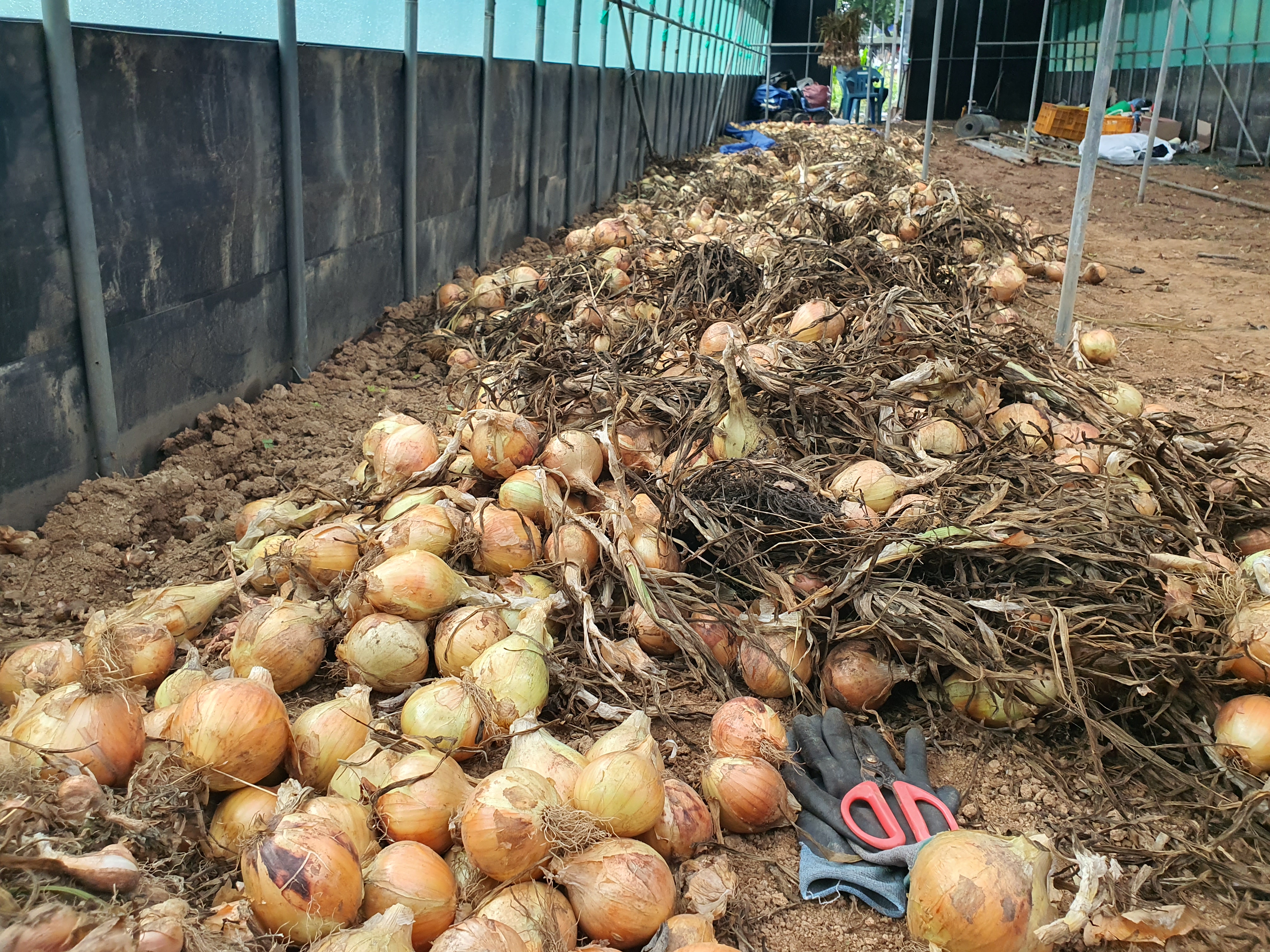 장명숙 농부는 양파대 자릅니다.