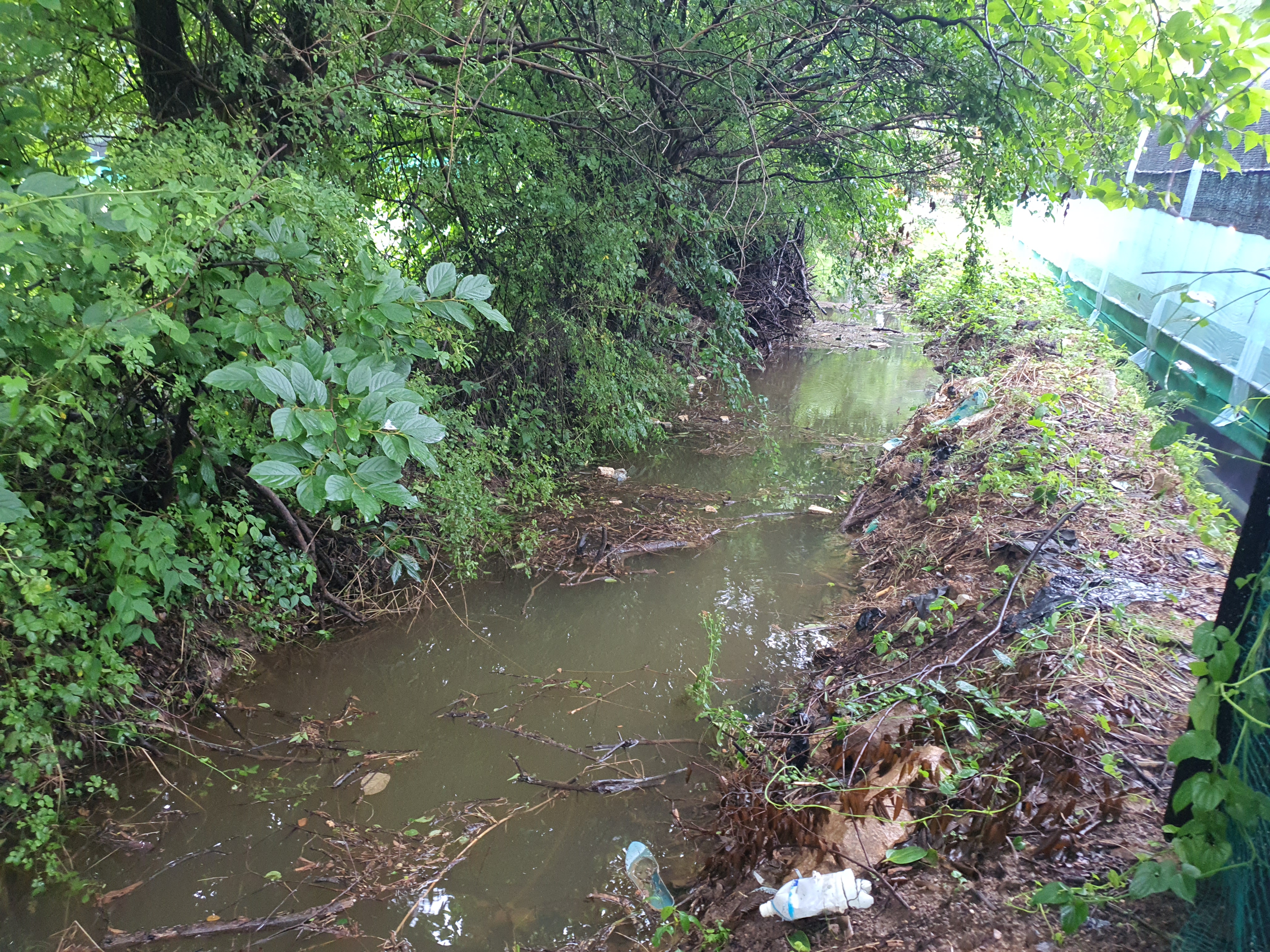 배수로관이 토사로 꽉막혀 물이 내려가지않고 있습니다