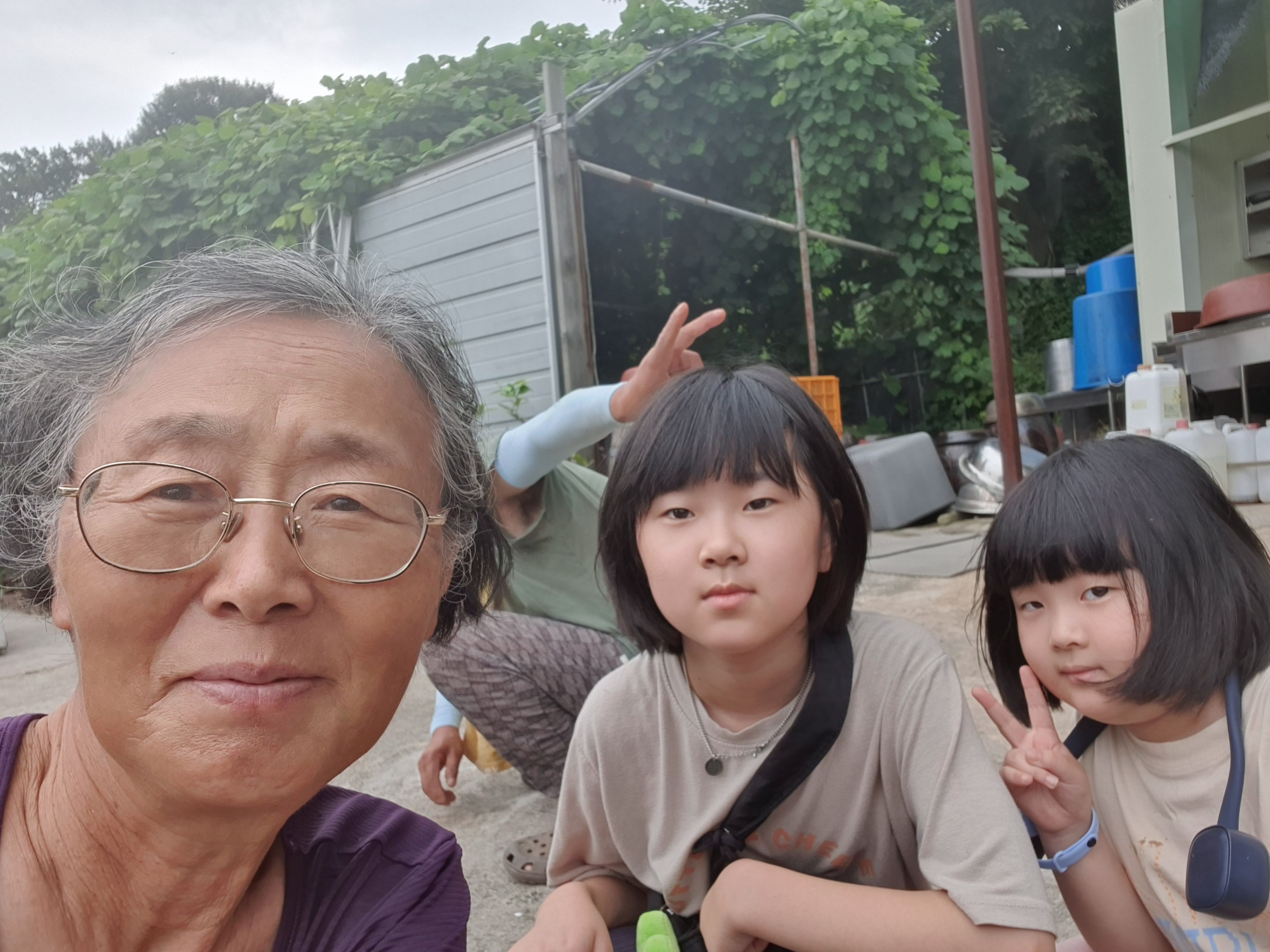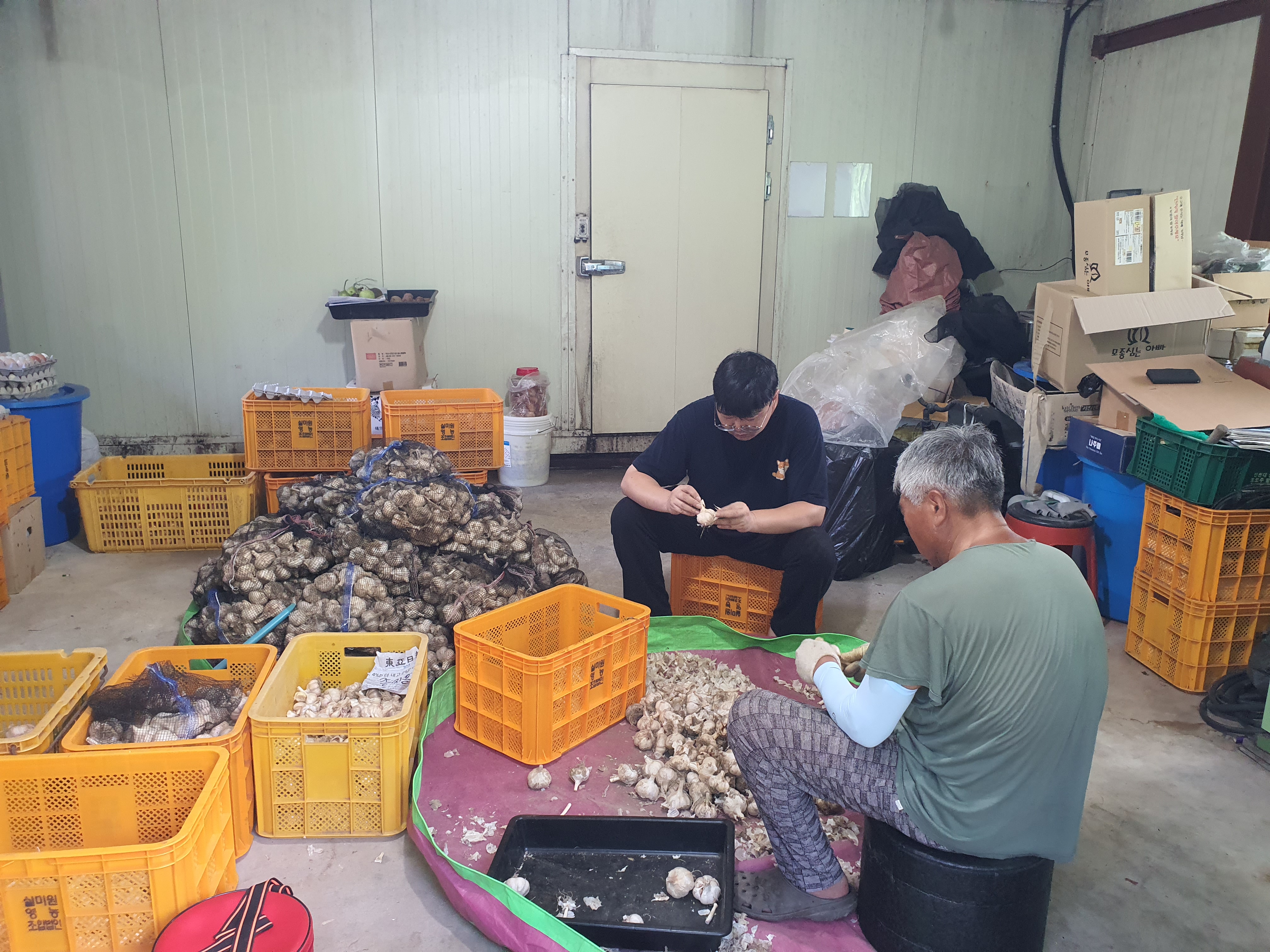 마늘 다듬기 작업 아들,아버지, 엄마 그리고 손녀4명 방문